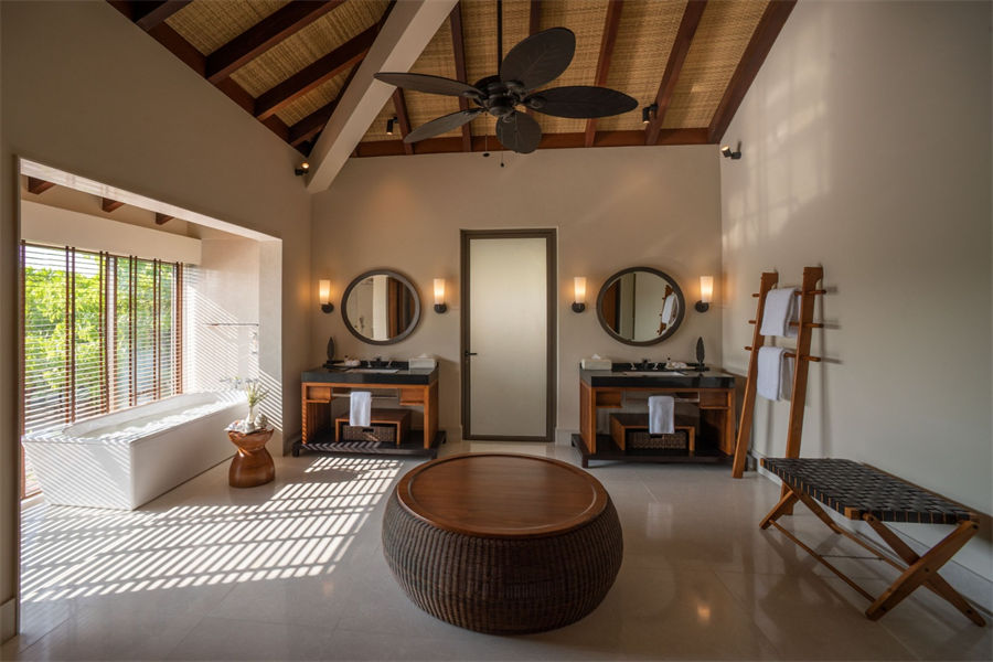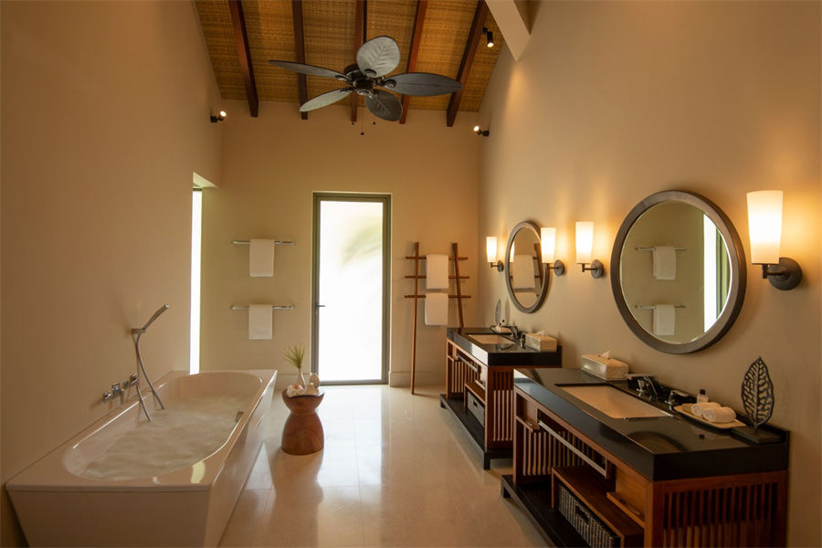 房型介绍:全岛8栋的双卧沙滩泳池别墅面积为336㎡,分为日出日落两种朝向,可以自由选择,日出有4间,日落有4间。这些宽敞的别墅享有海滨花园环境,提供舒缓的隐居、舒适和隐私,适合与家人或一群朋友共度难忘的假期。从面向海滩和泻湖的四柱床,到环绕式室外露台和私人游泳池,每个空间的设计都考虑到了轻松的放松氛围。别墅还设有室内和室外淋浴。