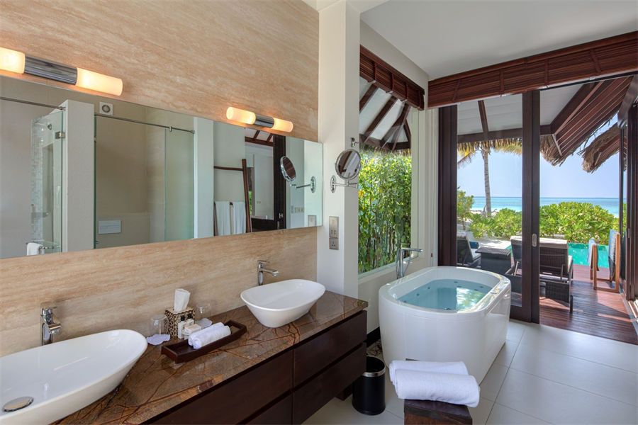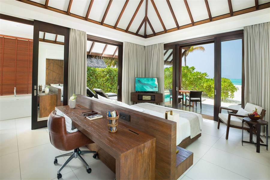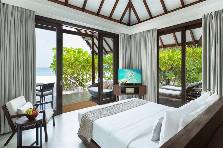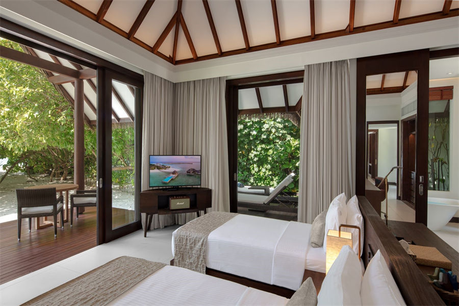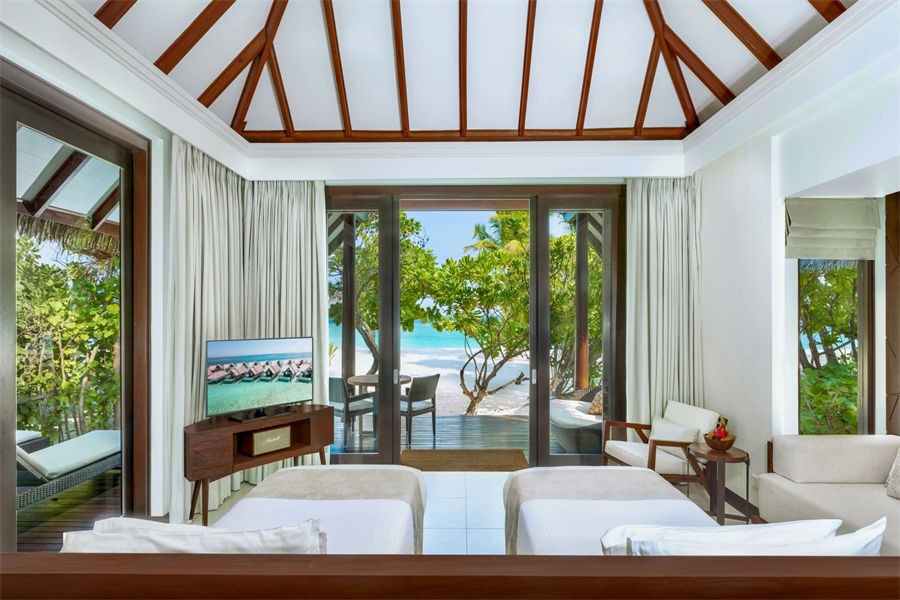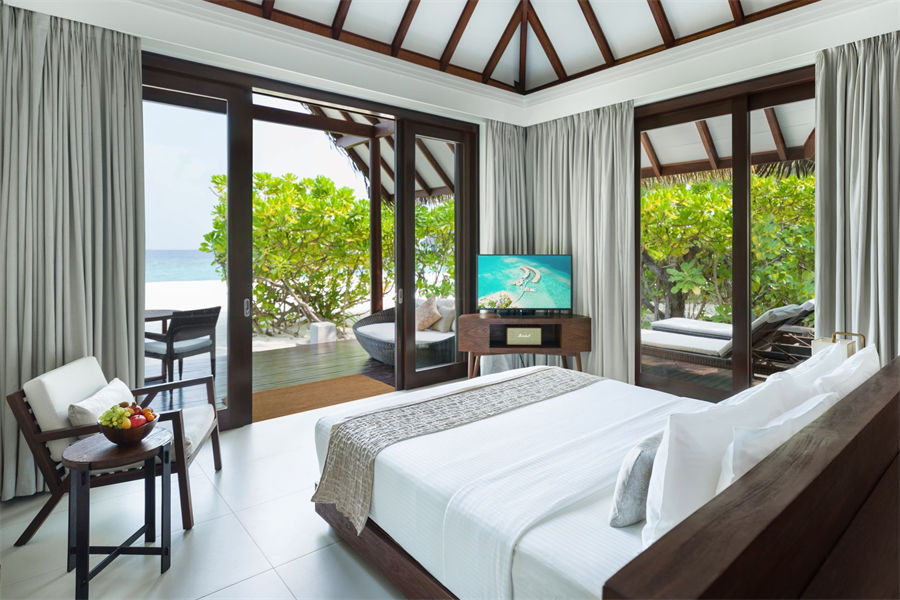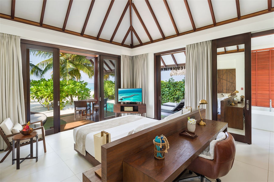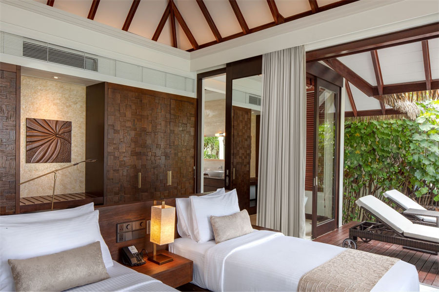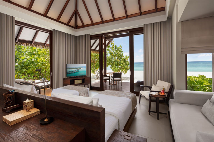 房型介绍:全岛共51栋的沙滩别墅面积92㎡,每一栋海滨别墅都设计优雅,可以直接接触阳光、沙滩和大海,并设有一个大型露天阳台,可以享受热带度假和神奇的海洋氛围。