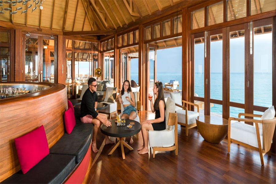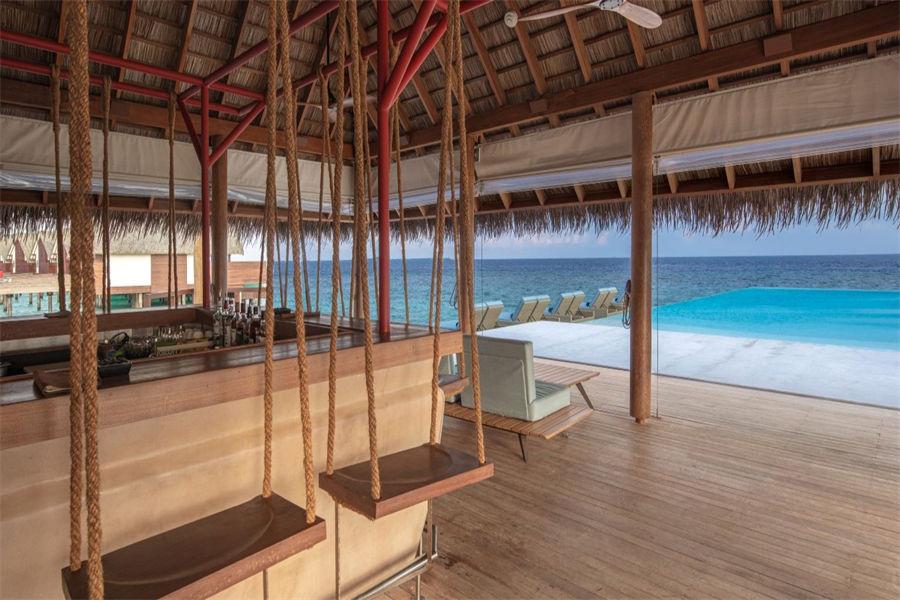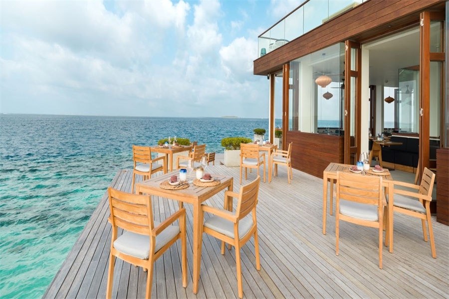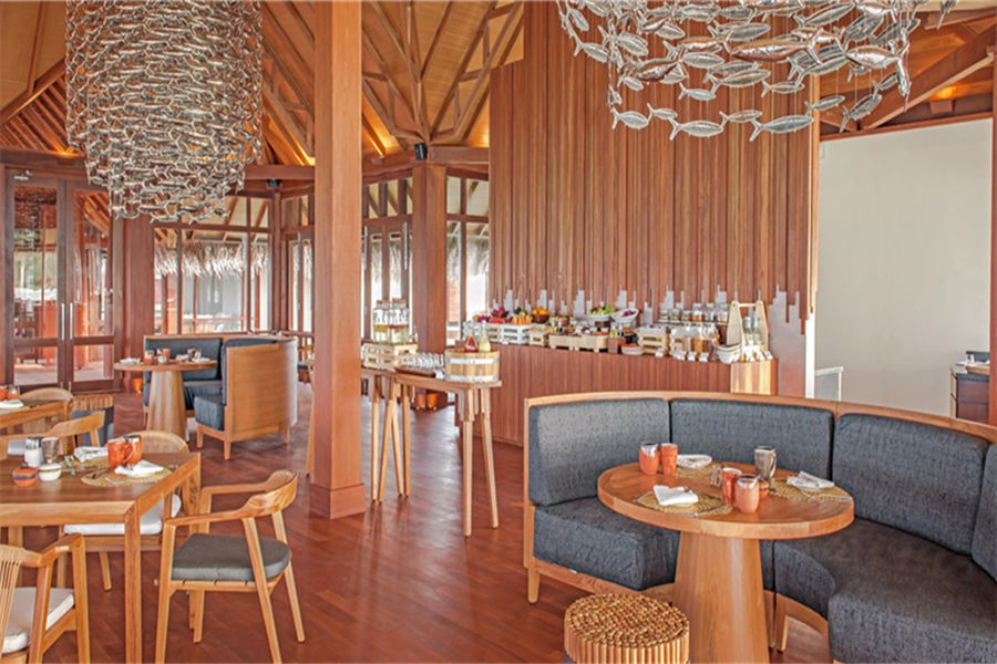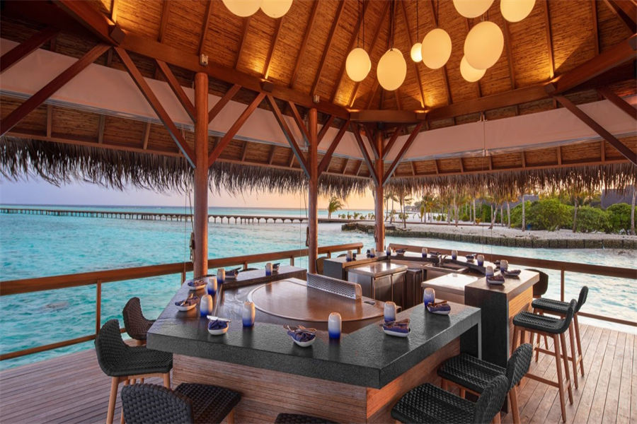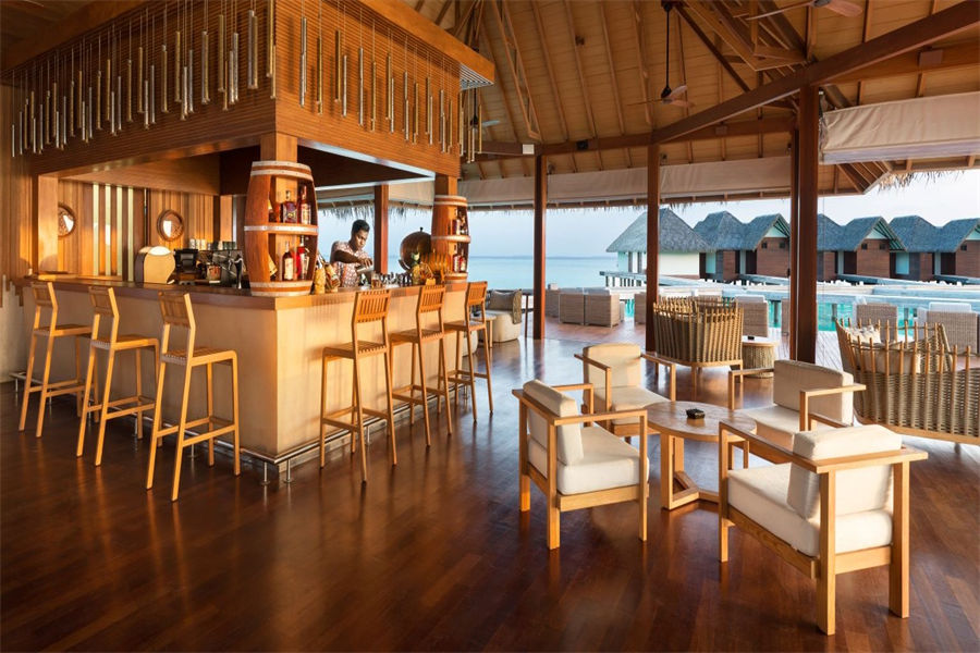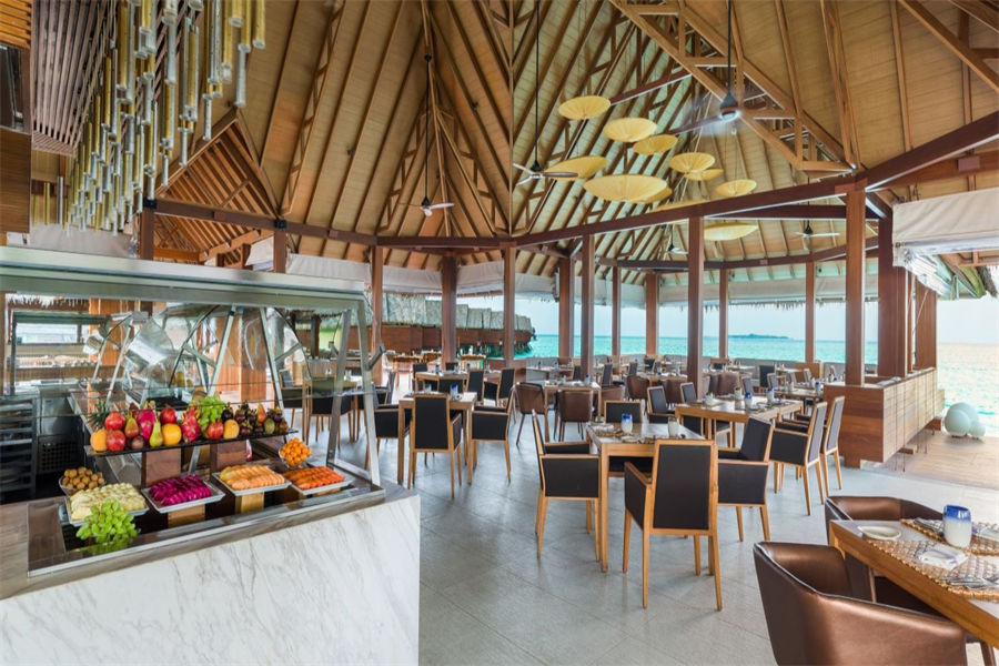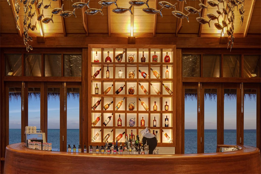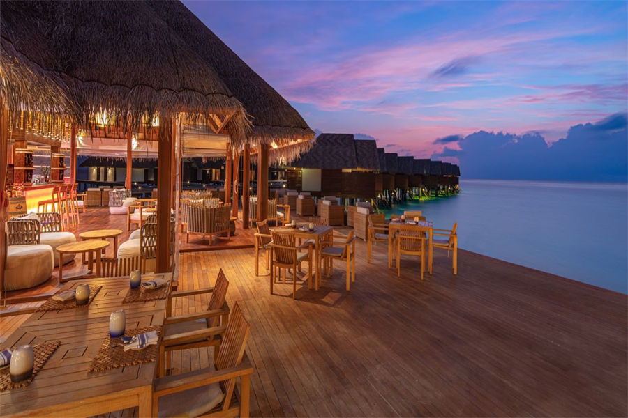 餐厅介绍:Falhu Bar是海洋套房&海洋住宅的专酒吧,酒吧的名字来自泻湖(马尔代夫Divelhi语中的“ Falhu”意为“泻湖”),餐厅位于水上无边泳池和Baani餐厅之间。