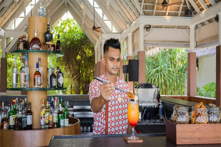 餐厅介绍:中心泳池酒吧供应各种异国情调的鸡尾酒、饮品等,是岛上最受欢迎的地方之一。在此放松、吸收和拥抱无压力的马尔代夫氛围。在这里,客人可以全天享用创意鸡尾酒和小吃以及甲板上水烟的美味香气。