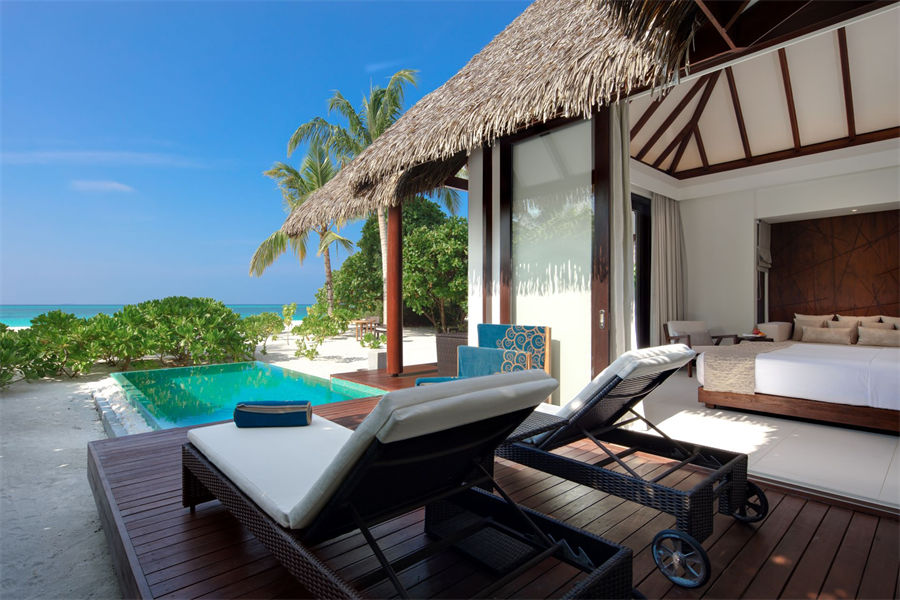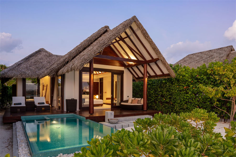 房型介绍:全岛共10栋的泳池沙滩别墅面积110㎡,这些独特的别墅提供迷人而宁静的体验,配有私人游泳池和日光躺椅,每栋别墅都可以直接进入海滩,让您可以在耀眼的绿松石般的海水中即兴畅游。