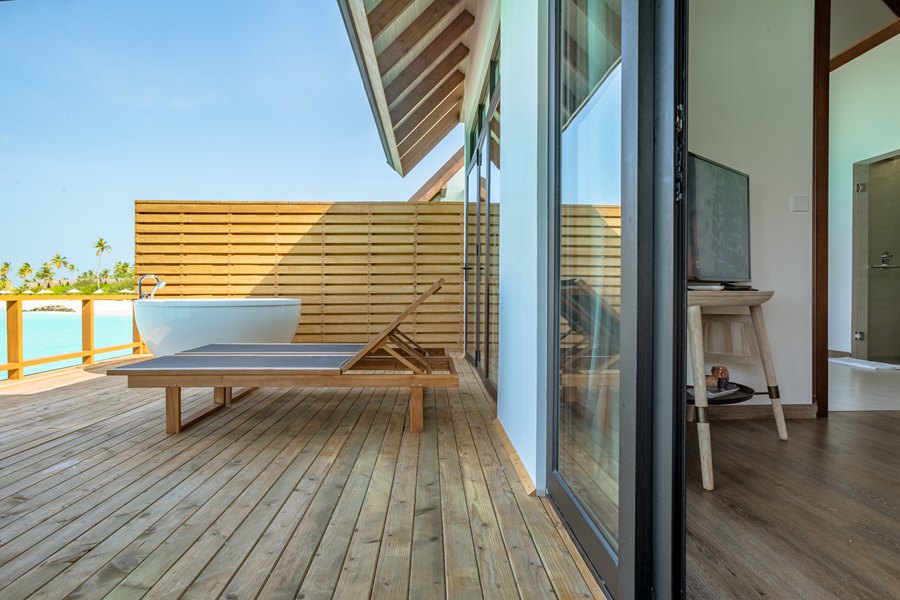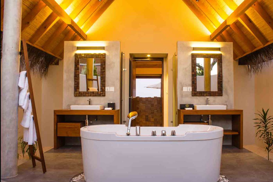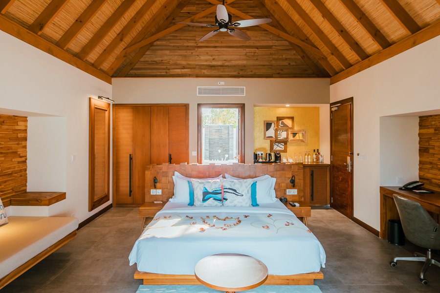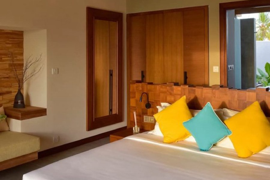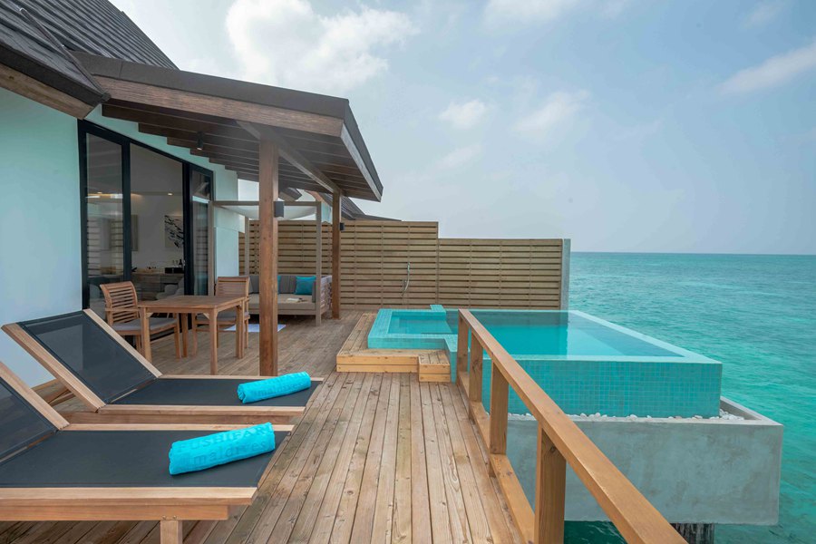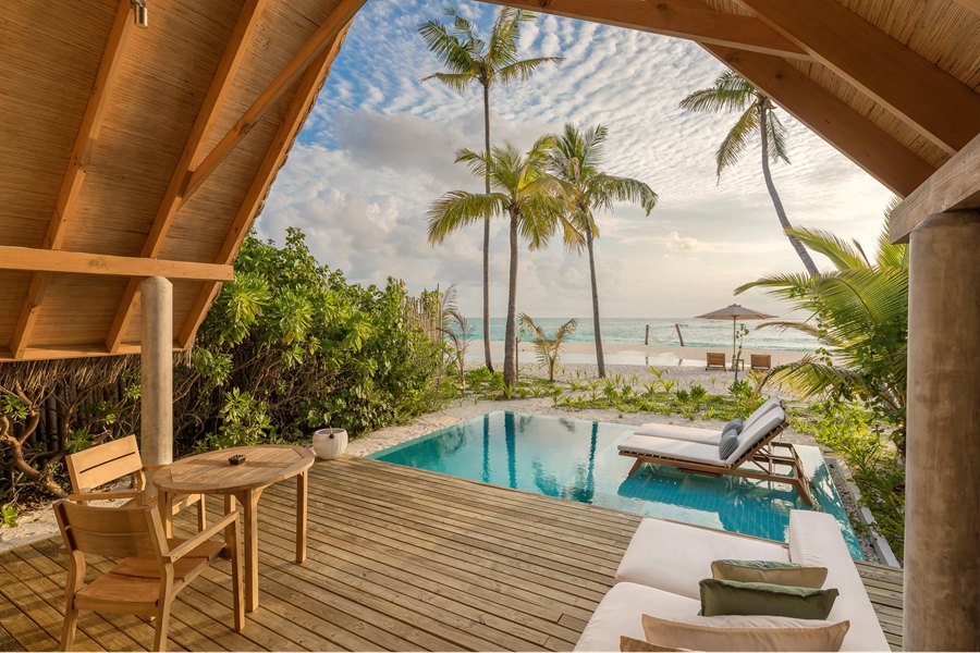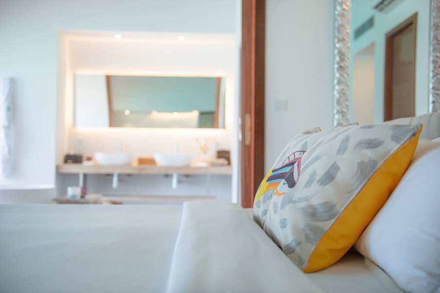 房型介绍:面积为240平米,全岛仅有4栋,相当于是2栋别墅,沙滩别墅和泳池沙滩别墅组成,连接部分是公共客厅。隐藏在郁郁葱葱的热带植物,抬头就是壮丽的海景。