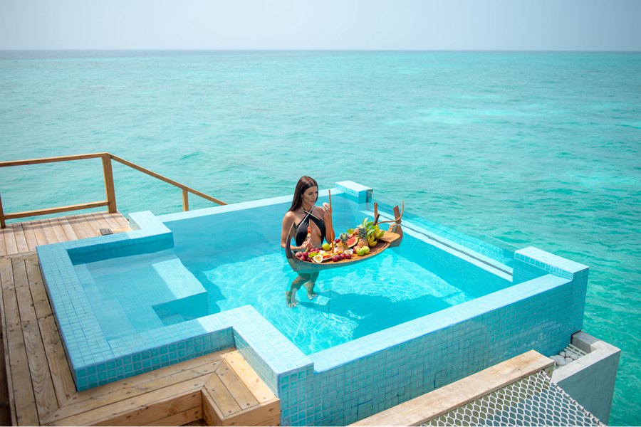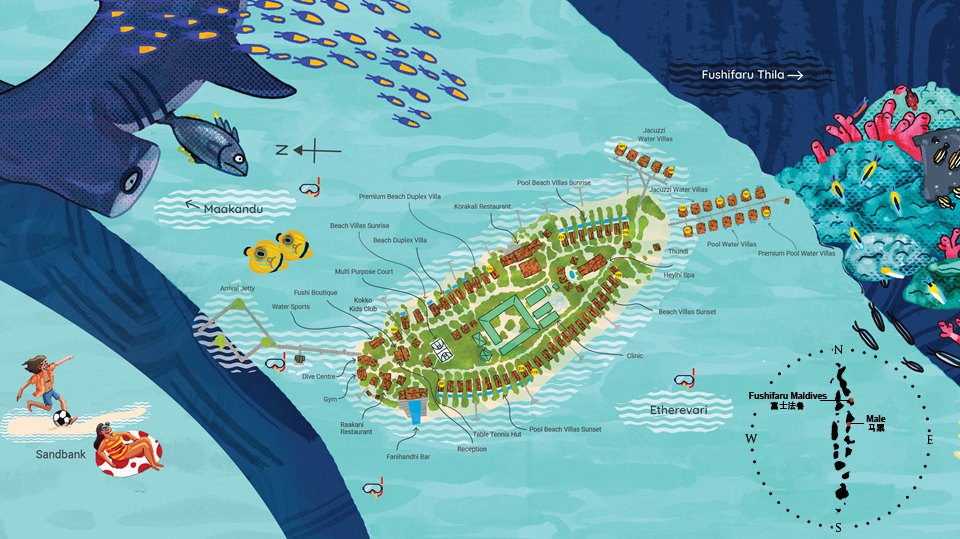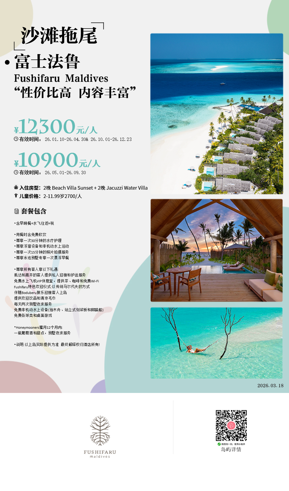 马尔代夫富士法鲁Fushifaru Maldives,位于沙薇尼亚环礁,乘坐水上飞机35分钟即可抵达,是一家时尚精品5星度假村。最早于2017年开业,未能达到岛主期许,直接2年后于2019年重新推倒重来,设计感满满,性价比极高,是一座非常出片的小岛。岛屿很小,只有63间别墅,而水屋仅仅19栋,所以一定要尽早预定;然后整个度假村却拥有3个餐厅,2个酒吧,按照这个配置标准,餐饮部分品质非常可靠。并且提供默认早晚餐或升级一价全包的模式。针对中国市场政策酒店非常慷慨,双人SPA,浪漫布置、出海活动、漂浮早餐和土耳其下午茶,统统免费送。加上岛屿旁边无人沙洲,优质沙滩拖尾和绝美宁静的泄湖,真的是一个完美小岛!
