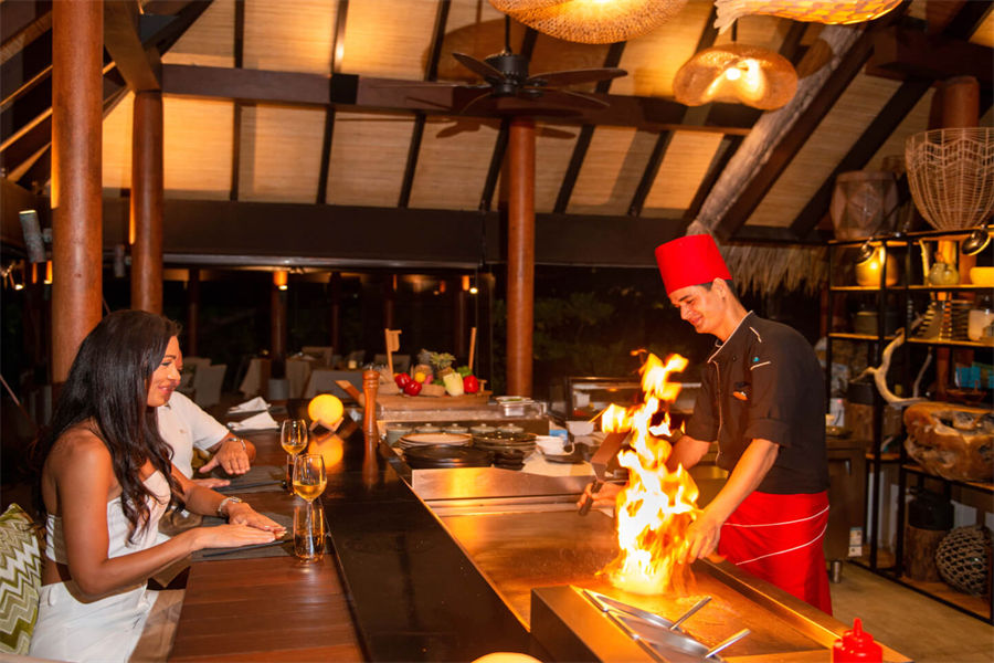 餐厅介绍:Raakani餐厅利用海洋丰富的烹饪资源,提供壮观的海滨用餐体验。俯瞰着波光粼粼的大海,在茅草亭下用餐,同时享用当天的新鲜捕获物、烤肉和海鲜拼盘。