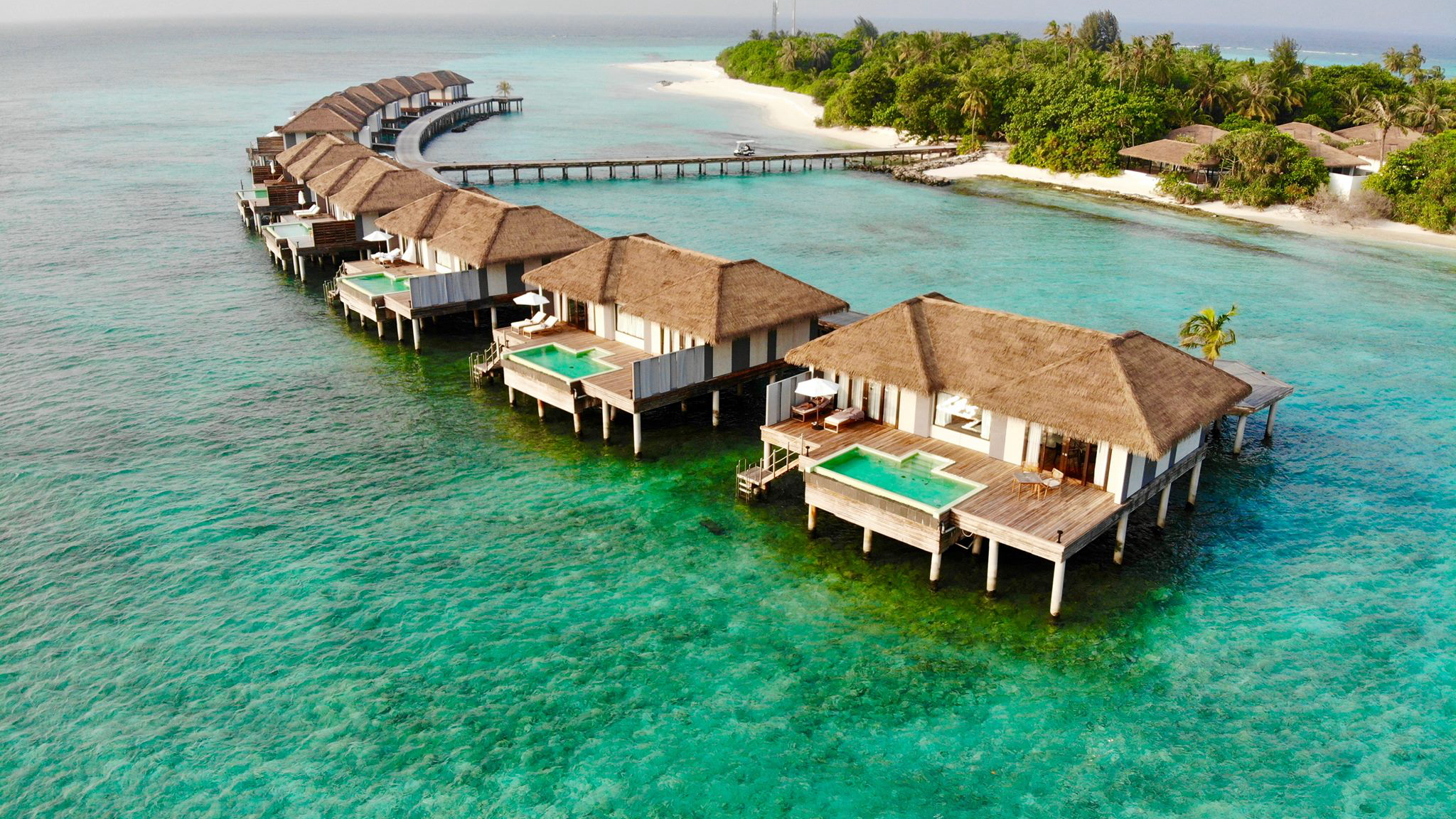房型介绍:位于远离主岛的泄湖之上,可以欣赏日出,拥有私人泳池。