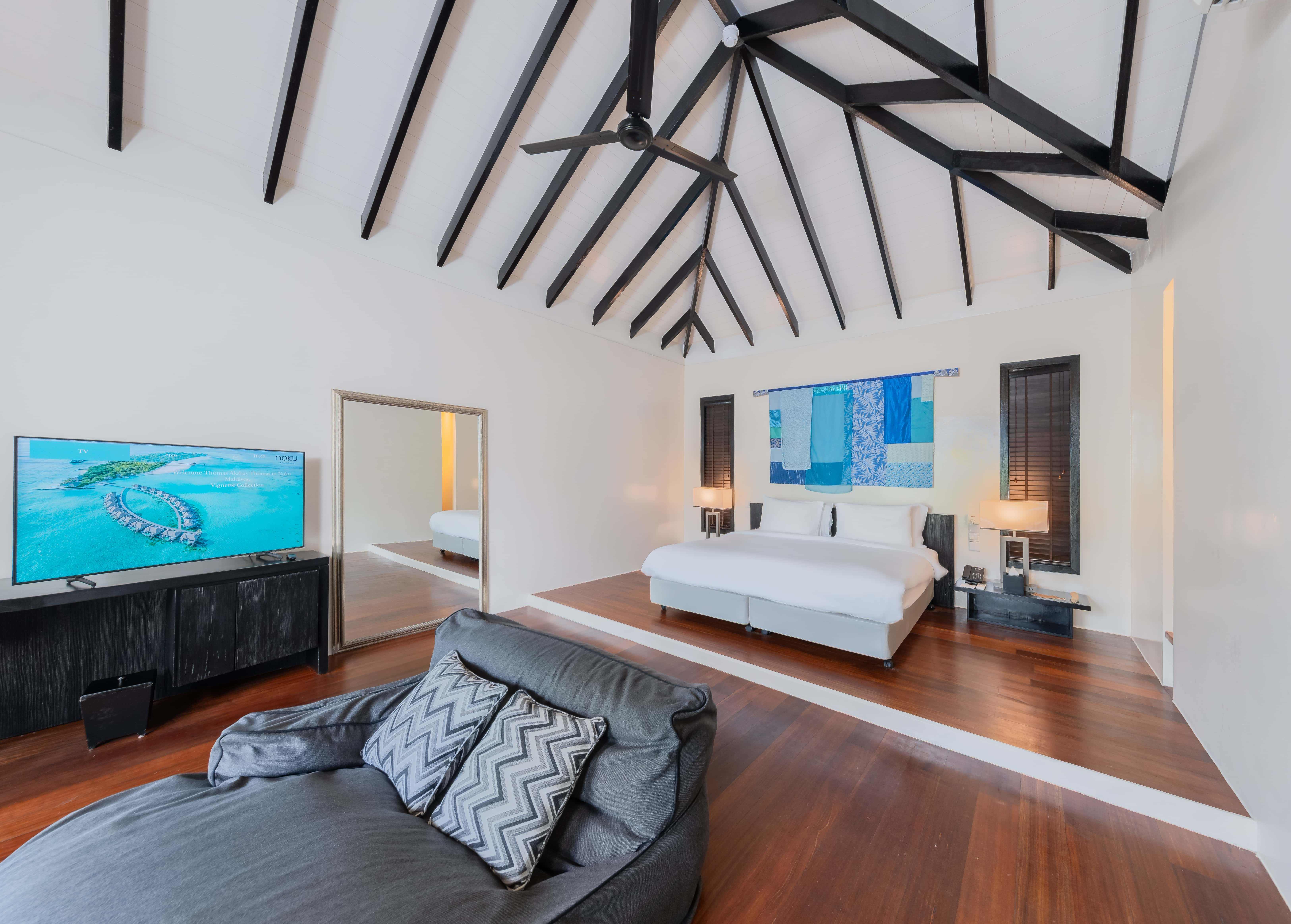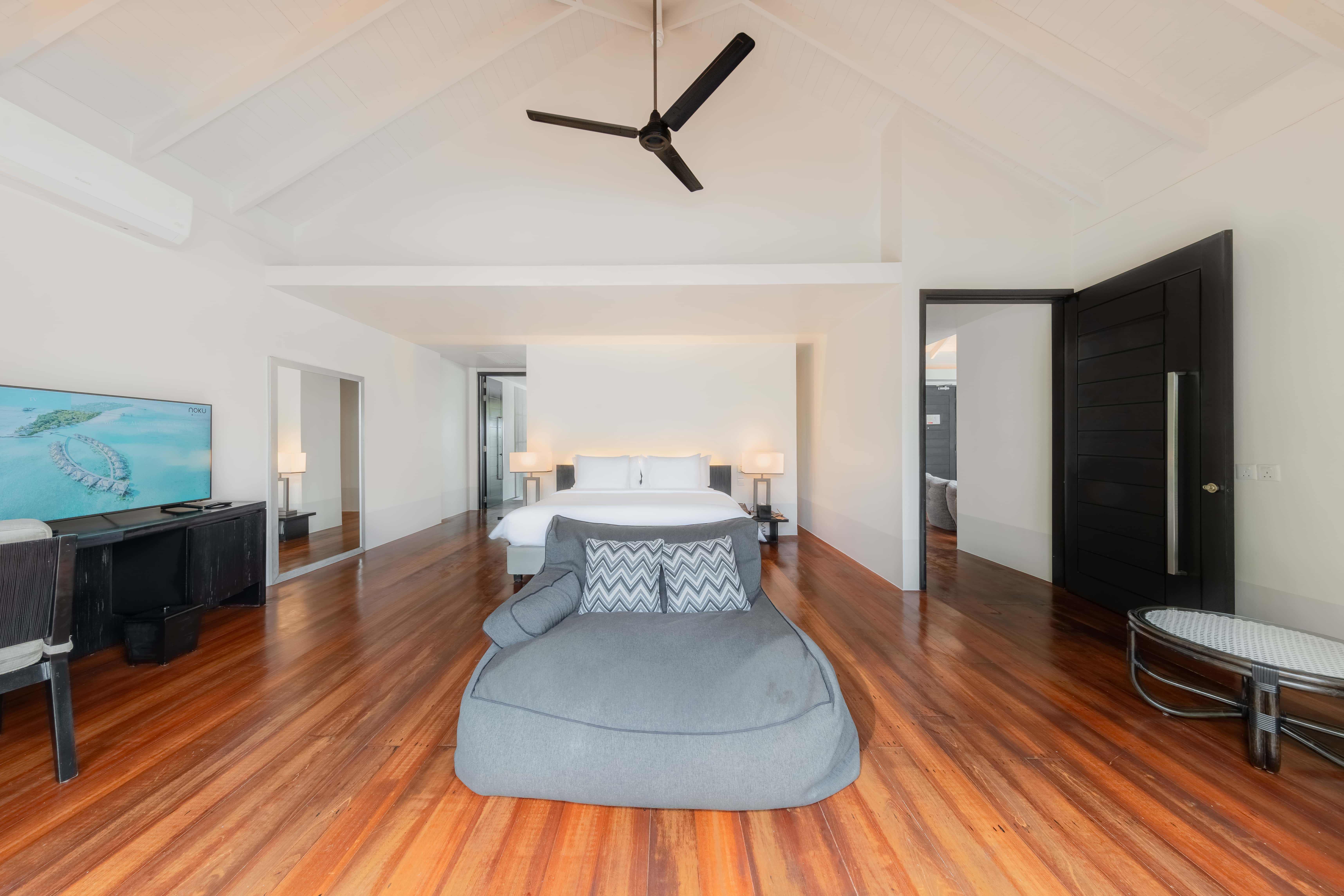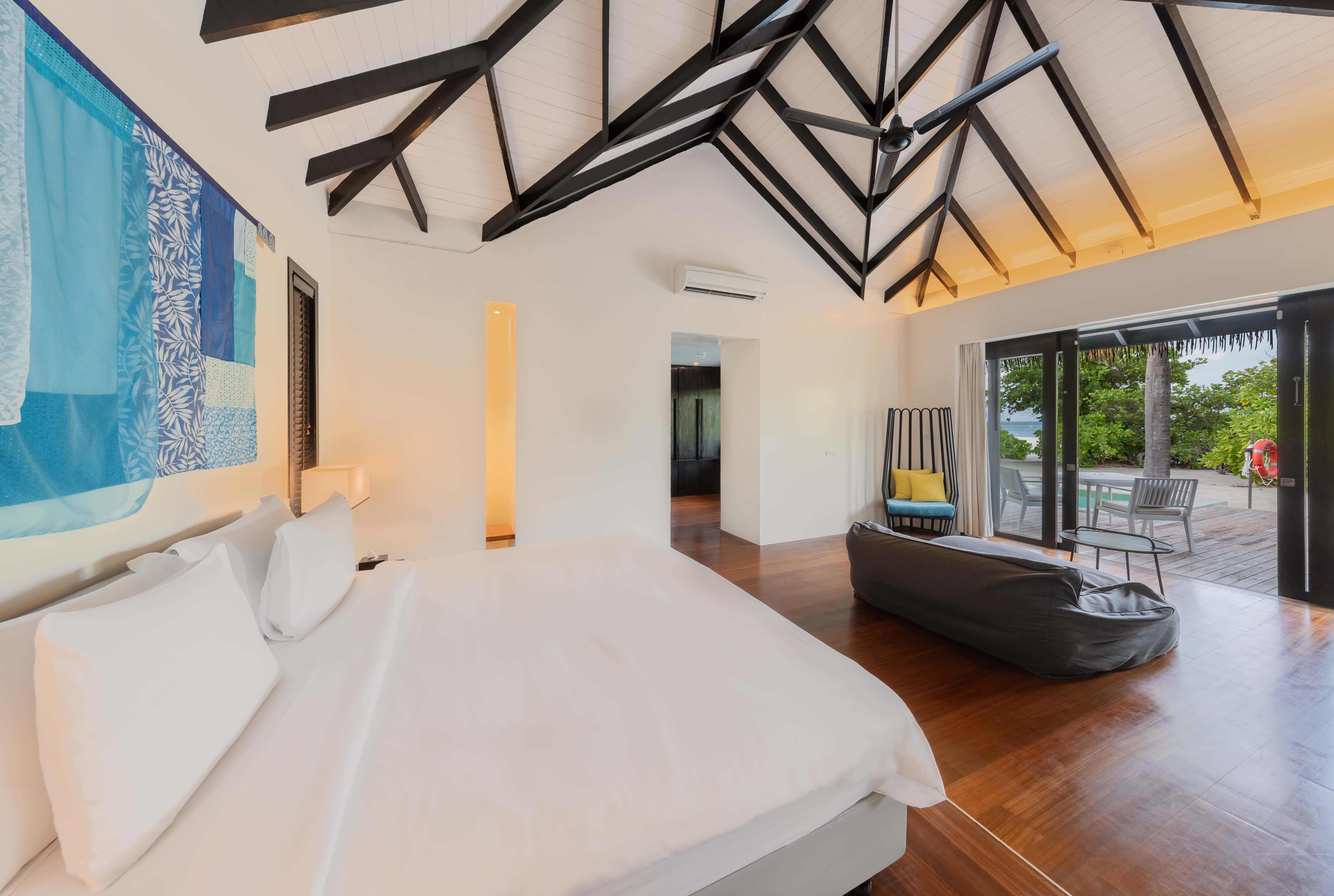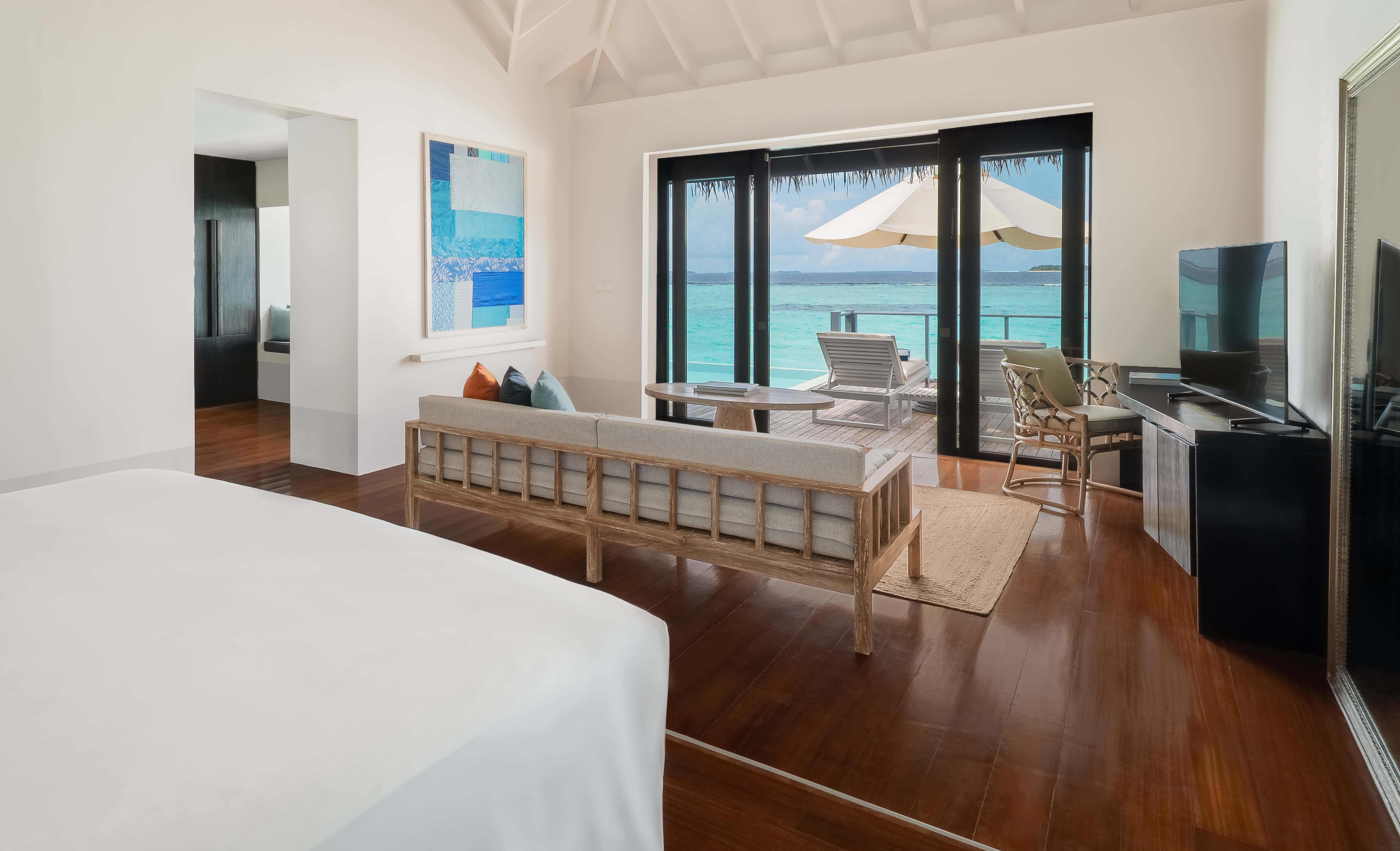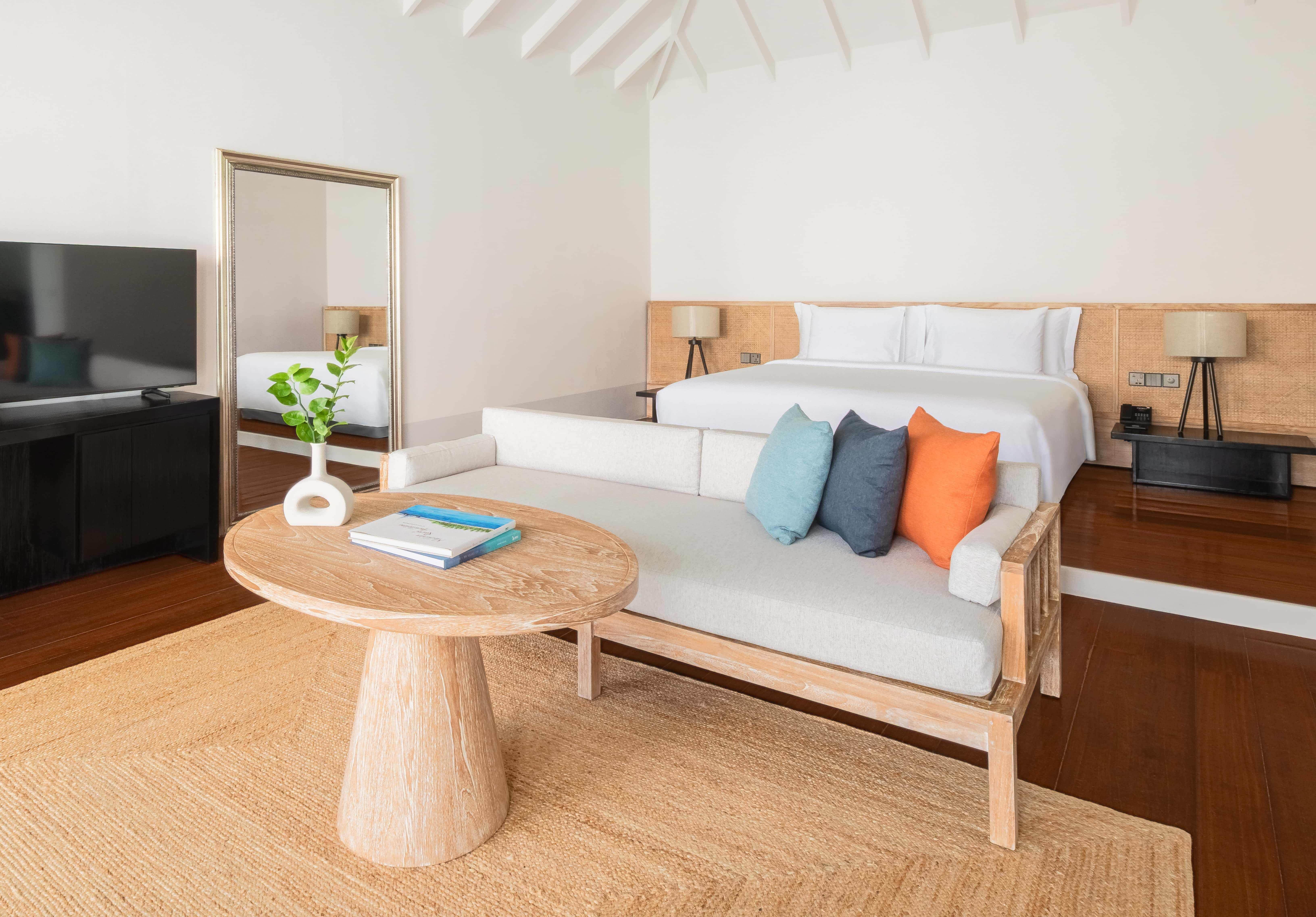房型介绍:拥有卧室和起居室,面朝东方,白色墙壁和深色木质内饰营造出低调的优雅氛围,直通白色沙滩欣赏壮丽印度洋和随时随地感受日光浴。