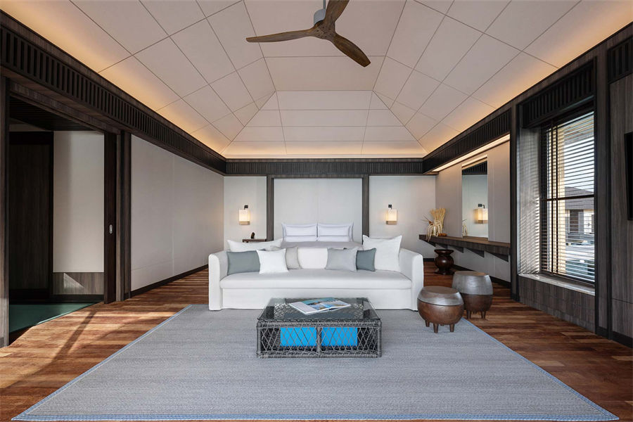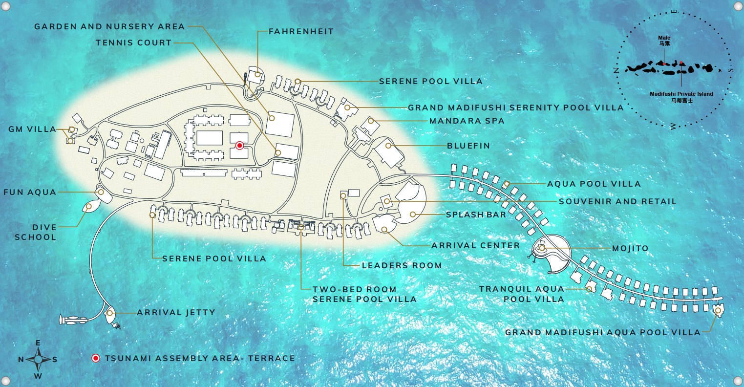 房型介绍:宁静泳池别墅共有26间,朝向不同。其中7间是日出景观,其他19间是日落景观。所有别墅都隐藏在热闹的Madifushi私人岛屿上的海滩上的热带绿色植物中,设有私人花园,小型游泳池和充足的落地窗照明空间。