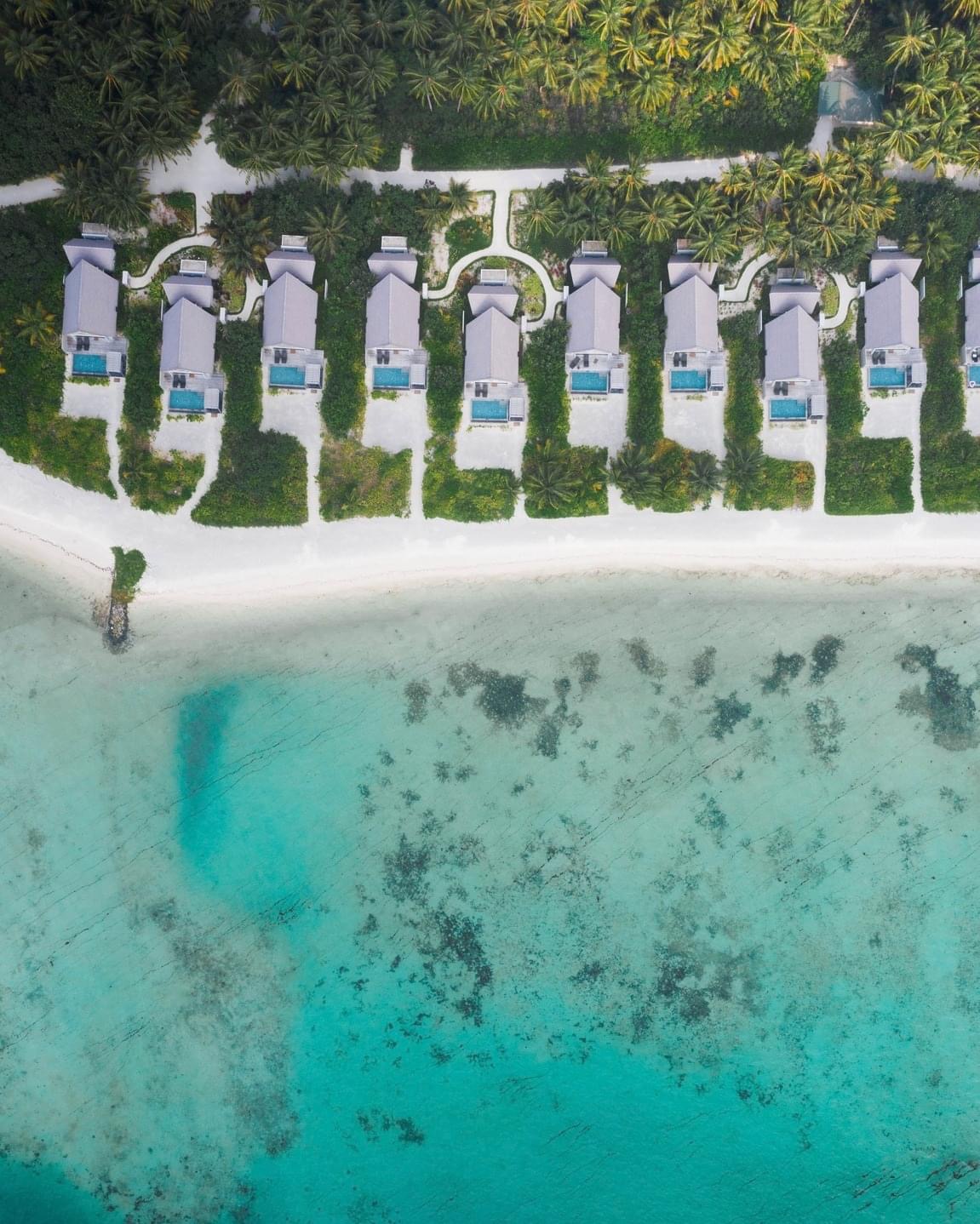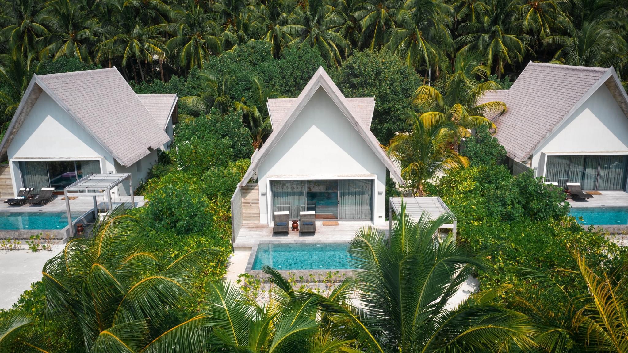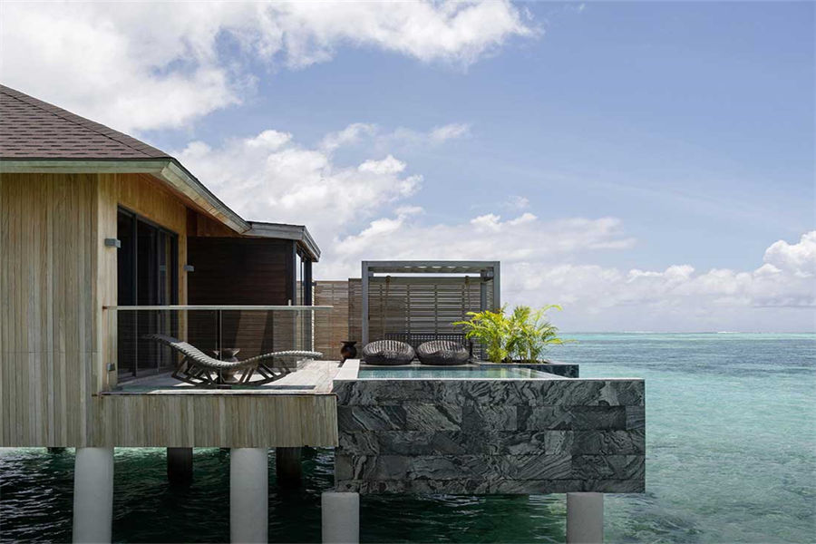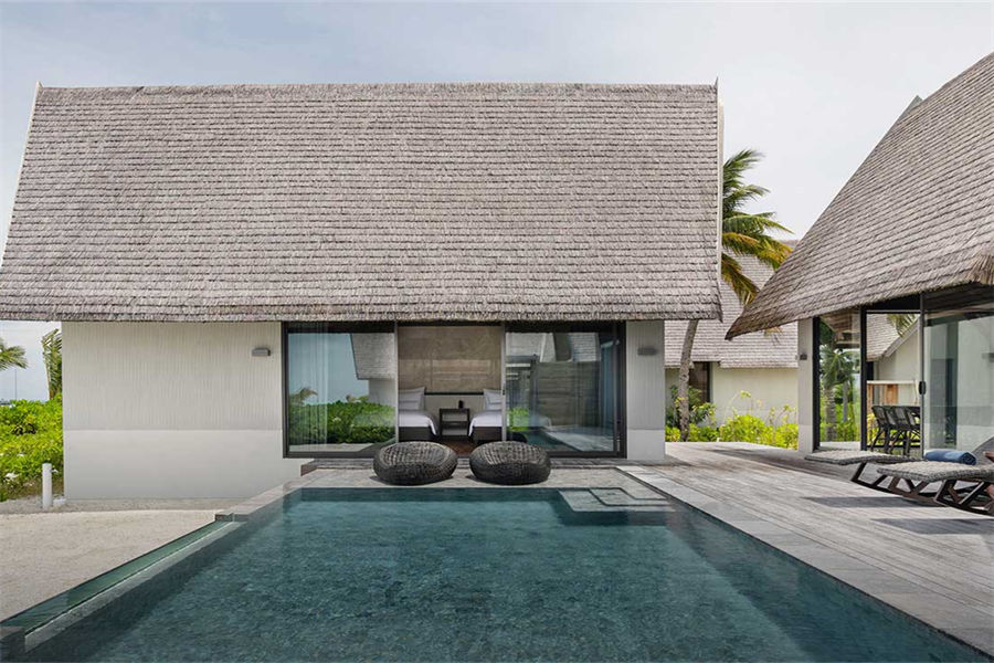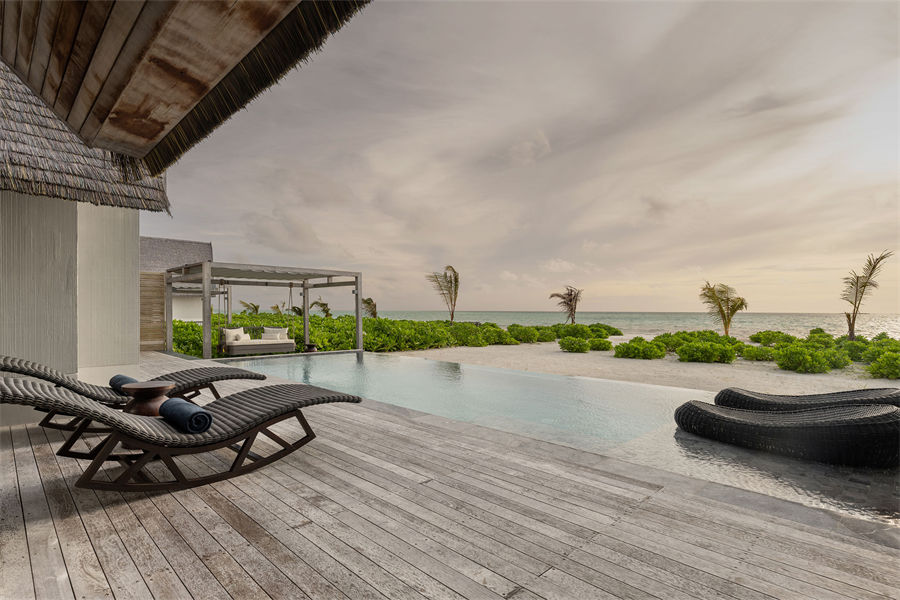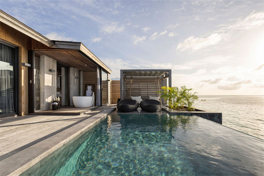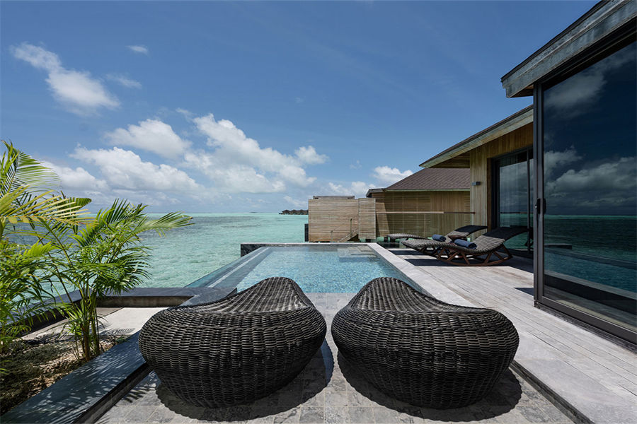 所有的别墅和套房均设有露台式的私人泳池,可通往以椰树环绕的沙滩或是栖息在印度洋上并可欣赏日落或日出的美景。