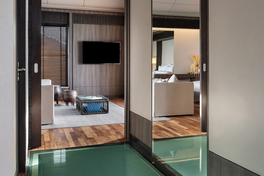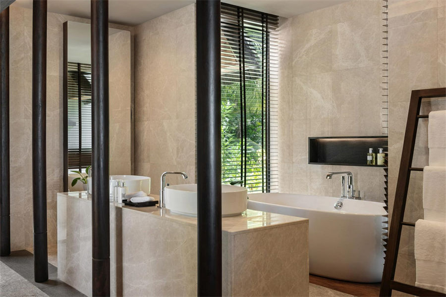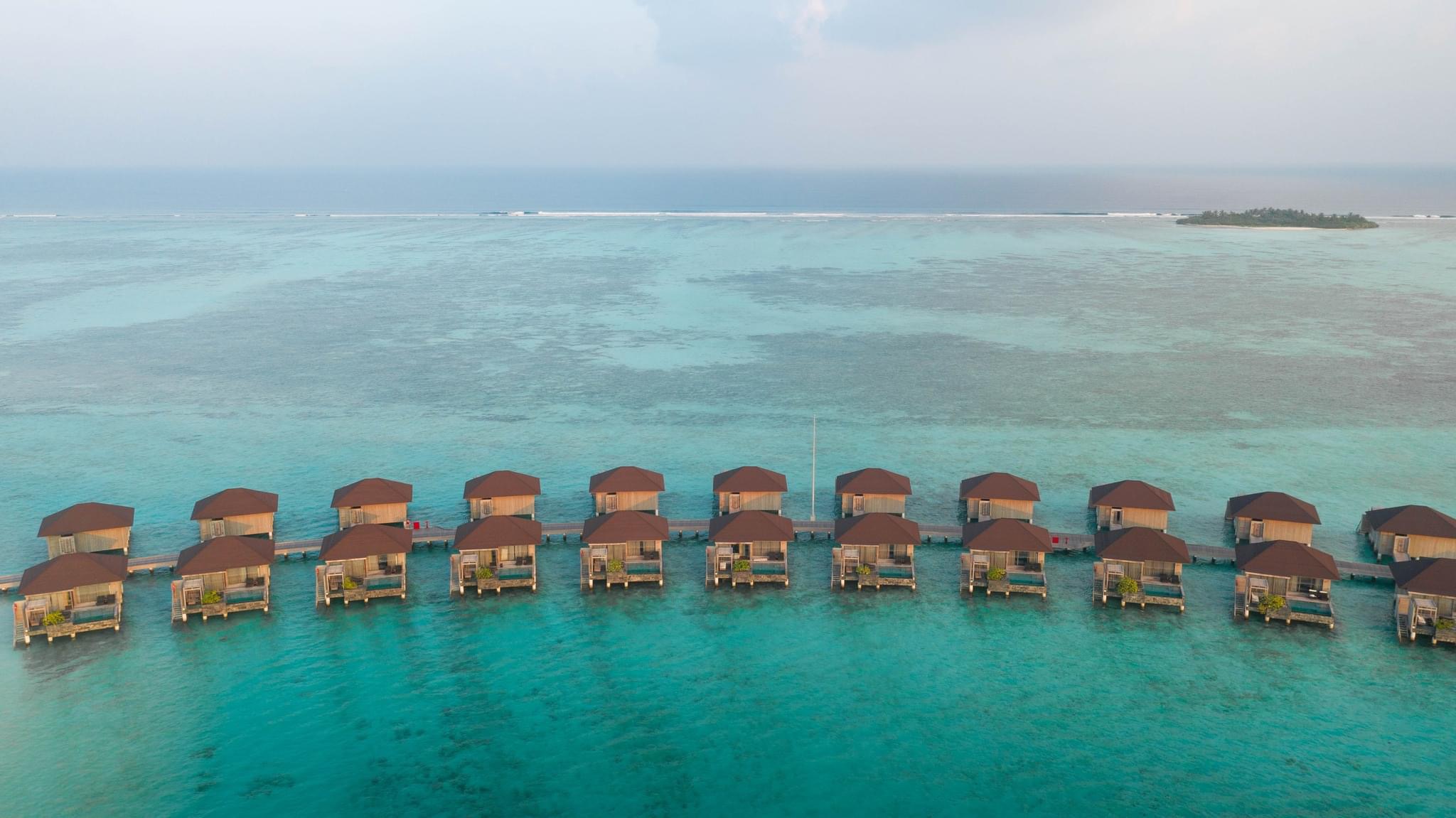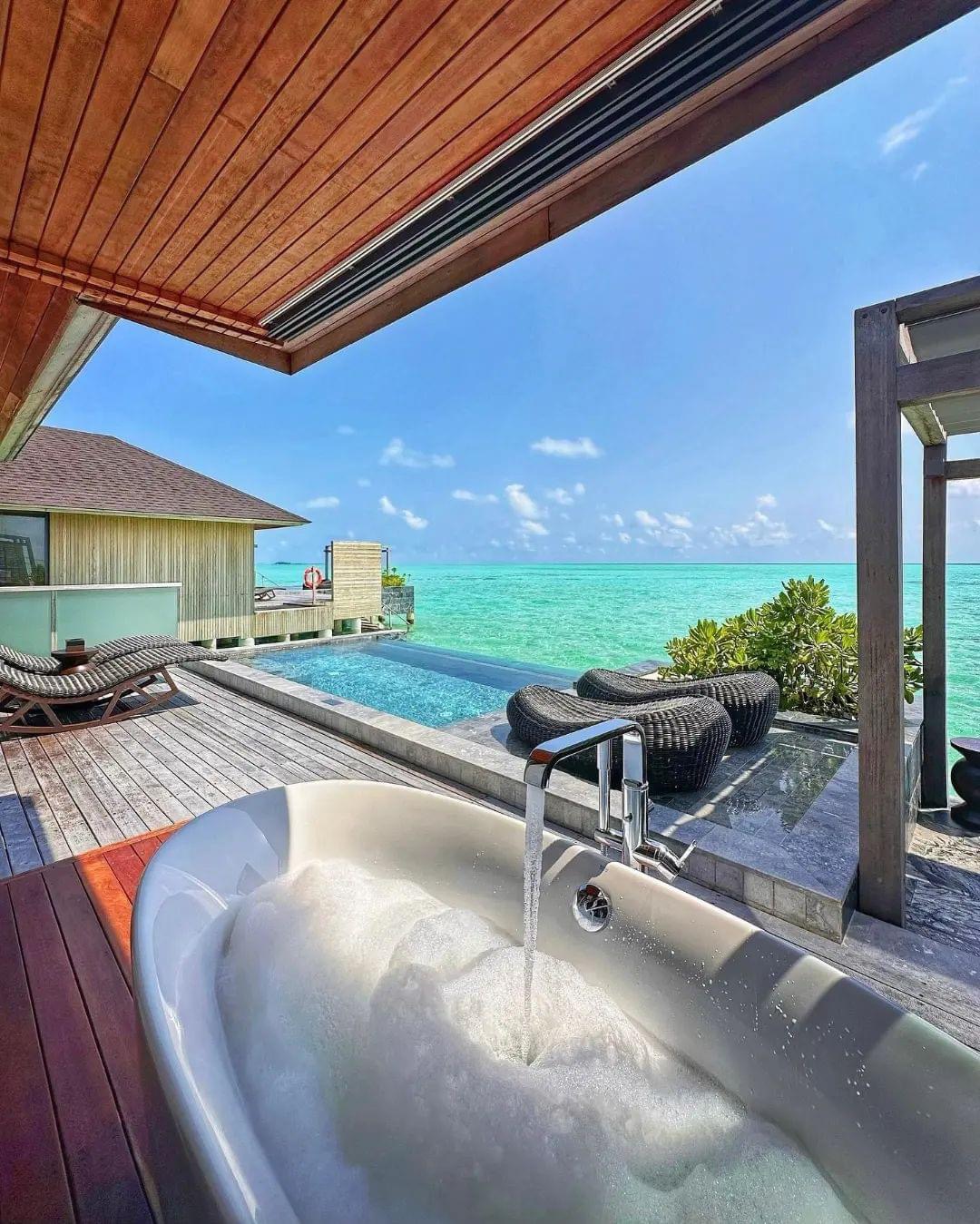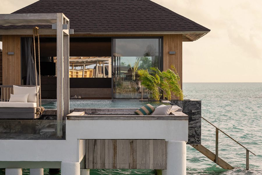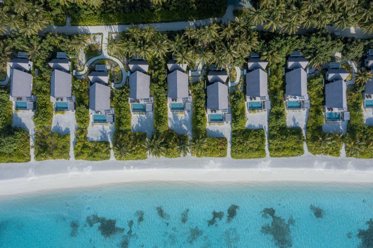 所有的别墅和套房均设有露台式的私人泳池,可通往以椰树环绕的沙滩或是栖息在印度洋上并可欣赏日落或日出的美景。