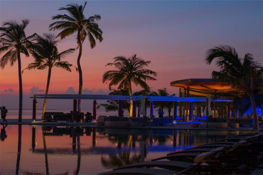 餐厅介绍:在永无止境的泻湖中凝视着日落。专业调酒师呈上一系列的混合式经典“及欧陆式饮料以及多种选项的无酒精饮料。