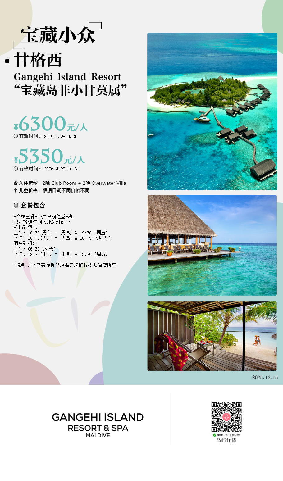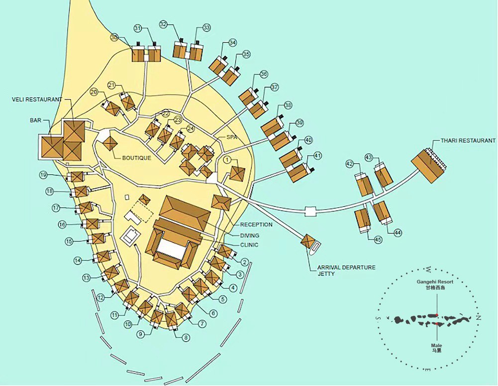 马尔代夫甘格西 Gangehi lsland Resort,超老牌酒店,1987 年开业,2015 年整体翻新,是非常原生态的马尔代夫风格度假村,因此植被茂盛,很注重客人隐私。从马累机场出发,你只需乘坐 25 分钟水飞即可上岛。这里老外居多,国人偏少,潜水环境 A 级,从沙滩边、水屋下去浮潜就能看见鱼群、海龟、柠檬鲨等。有绝美拖尾沙滩,泻湖风景更是美呆!岛比较小,但属于五脏俱全挂的,水上中心、spa 馆、健身房都有,它甚至有图书馆没有儿童乐园,适合带大儿童来度假没有中文服务,一点英语也不会的朋友慎重考虑。没有公共泳池,所有别墅也不带私人泳池,介意这一点的朋友,一定要想好了再去。岛上只有 45 间别墅,沙屋 29 间,水屋 16 间,共 5 个房型,房间最多能住 4 个大人,闺蜜游,带父母来这里非常划算!还有一间 family garden 别墅,不对外售卖,岛主自己的别墅。水屋甲板上只有两张躺椅,没有栏杆看海景无遮挡很爽!但是带小孩入住要多注意防止其掉入海里。沙屋 2 到 12 号前有防浪堤,风浪平静,下去浮潜很安全,适合小孩老人岸边看鱼,浅游泳。甘格西岛有 2 个餐厅 1 个酒吧,主餐厅以意大利美食为主,味道据反馈一般,建议多带点泡面零食解馋。泰丽餐厅Thari Restaurant 地理位置最好,能 270 度欣赏海景,推荐来这里享用晚餐,傍晚时分点杯鸡尾酒在餐厅网床上吹海风欣赏绚烂的马尔代夫夕阳,太绝了..