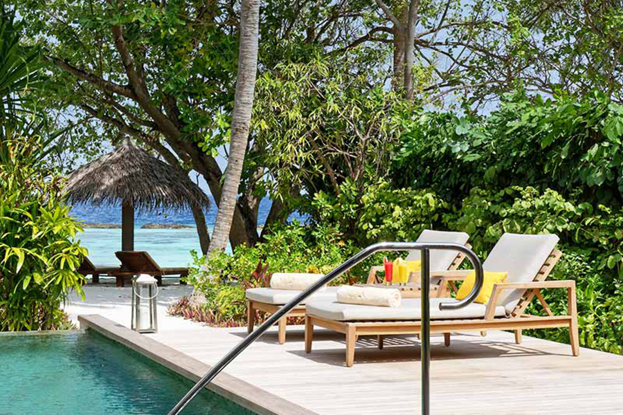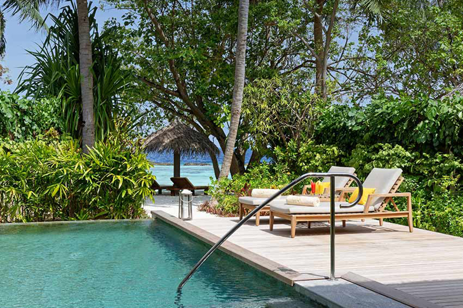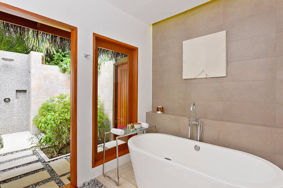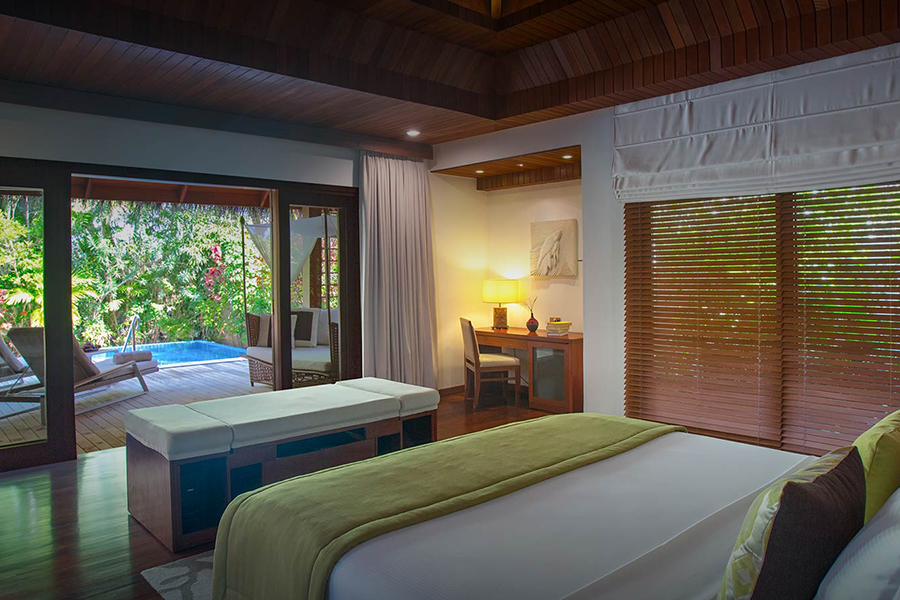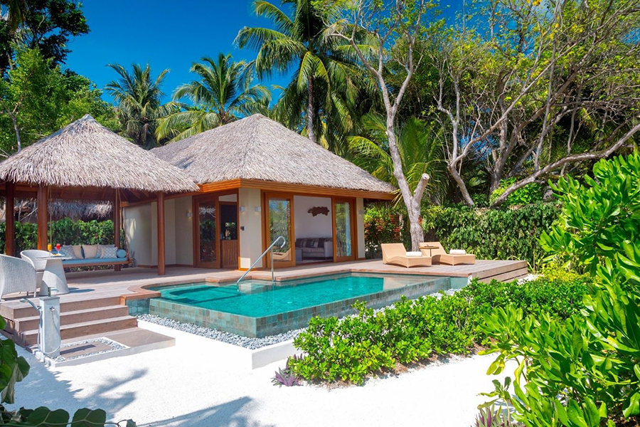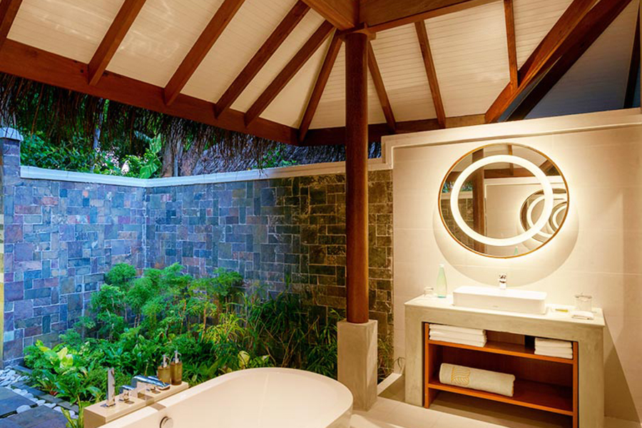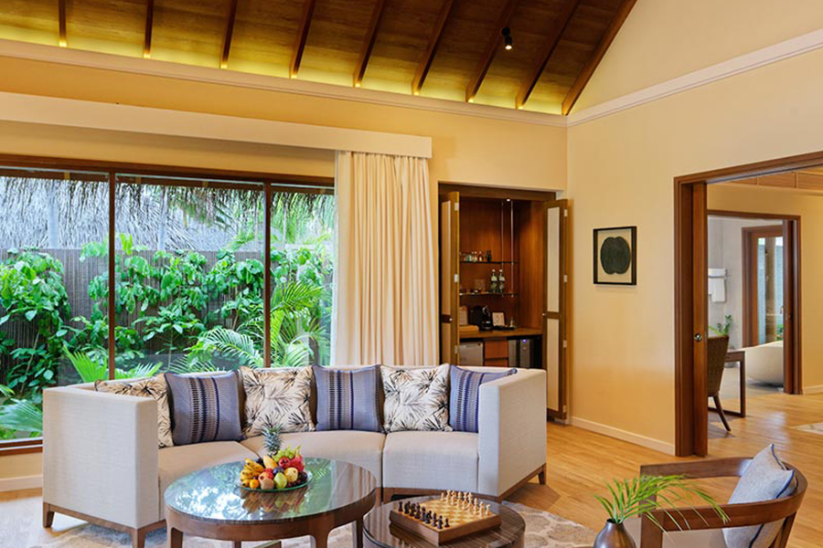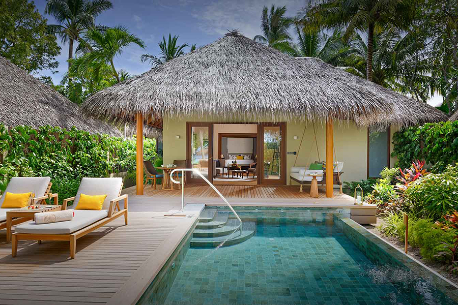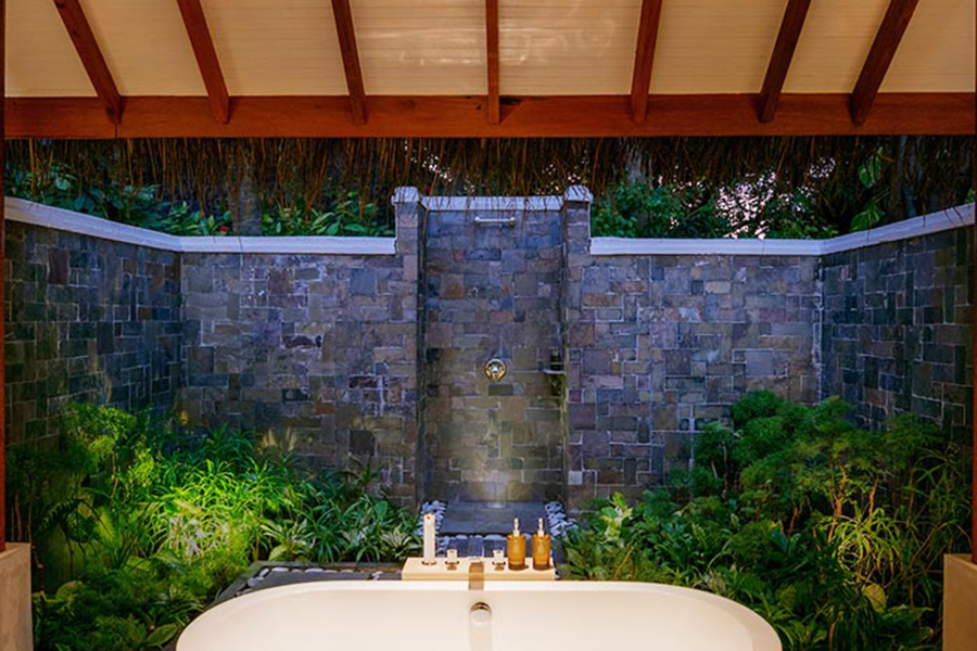 在内部,独立的卧室和起居室为您提供宾至如归所需的所有空间,而宽敞的浴室则为您提供豪华的设施。配备名牌洗浴用品、室内淋浴间、独立式深浴缸和室外淋浴间,头顶有棕榈树,脚下摆放着植物。舒适的家具、丰富的木质空间和定制的艺术品营造出一个安全而私密的避风港,而 24 小时管家则提供您所需的一切。在您的庭院中,您可以在自己的私人无边泳池中游泳,享受围墙花园绿洲的宁静与宁静。