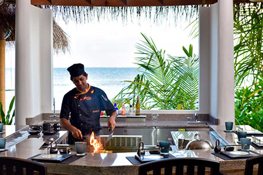 午餐时,您可以品尝马萨曼金枪鱼等丰盛的亮点,或者选择咖喱、小吃、沙拉、比萨饼和三明治。晚上,您可以在迷人的巴罗斯日落背景下享用国际和马尔代夫美食。