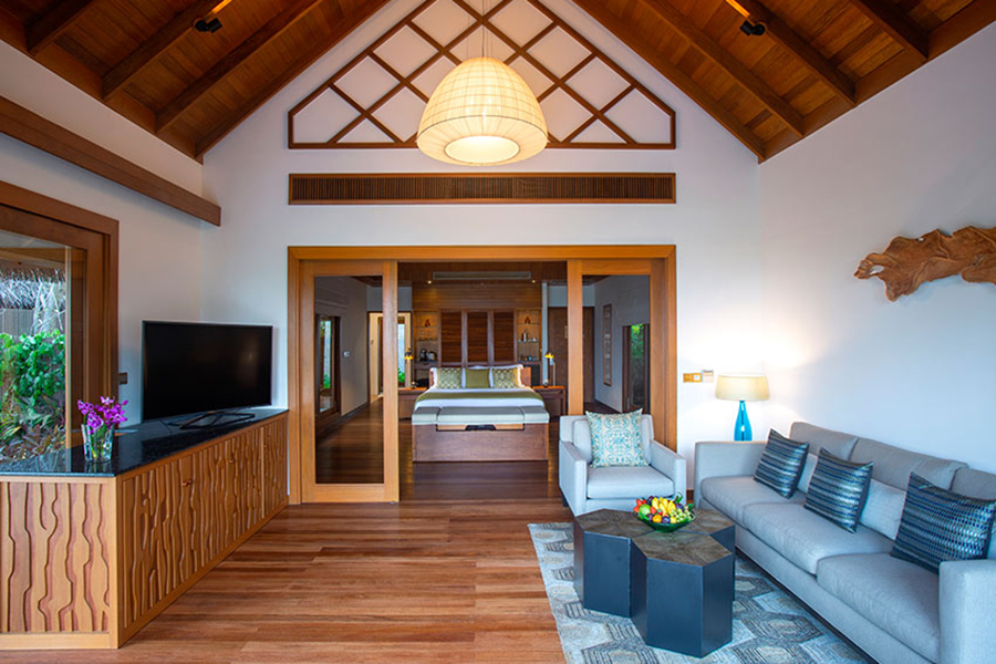 房型介绍:跳水池的绿松石色与泻湖的蓝色融为一体。在阳光普照的阳台上的沙发床后面,一条楼梯下降到水晶般清澈的海水,房子的珊瑚礁已经准备好了,等待着探索。巴罗斯的生活是光荣的,无论是外在还是内在。您将在水上的私人茧中找到各种舒适感——丰富的柚木地板、舒适的家具和豪华床上用品、藏书和室内游戏的图书馆以及各种现代便利设施。您的热带水上天堂为您提供隐私和访问的完美平衡,在2023年进行了翻新。