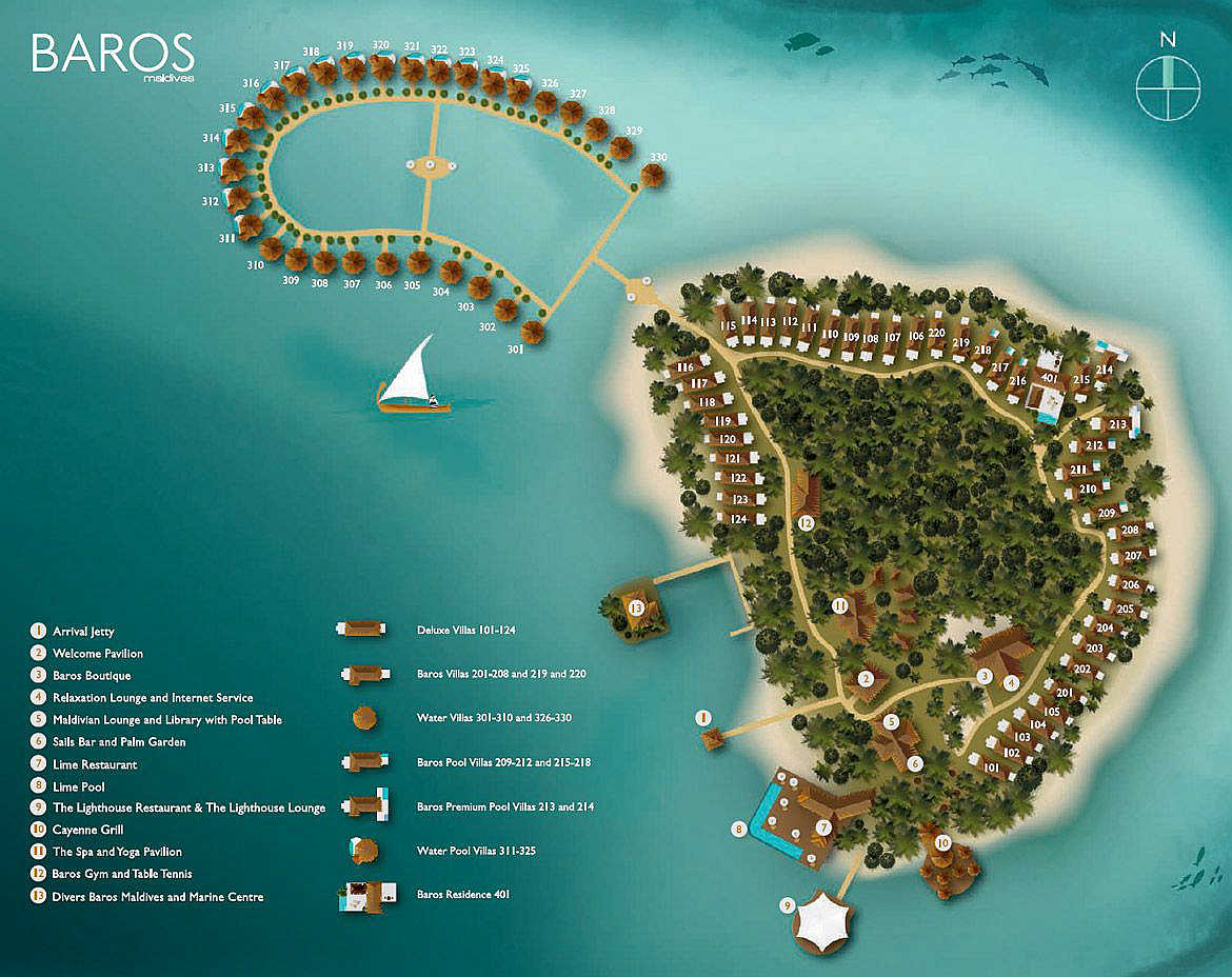 马尔代夫巴洛斯岛(Baros Maldives)位于北马累环礁,距离马累机场仅有15公里,乘坐25分钟快艇即可到达,可以做到当天上岛,岛屿历史较为悠久,修建于1973年,于2018年重新装修,巴洛斯的植被较为茂盛,很符合早期马代岛屿的特征,所以岛屿的隐秘性非常棒,这也是巴洛斯非常适合情侣蜜月的原因,同时岛屿的沙滩质量也是顶级水平,当然因为岛屿早期的选址,巴洛斯的浮潜环境是非常好的,和爱的人一起潜入充满充满色彩且神秘的大海,直接让气氛升温,岛屿房间的则采用了天然材料搭建的原生态房间,优秀的设计让住过的人都给出了不错的评价。