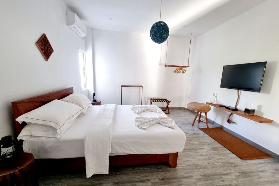 房型介绍:采用极简主义风格和红木手工制作家具,能够俯瞰大海,包含私人阳台、电视、空调、WIFI、大量采用亚麻制品。