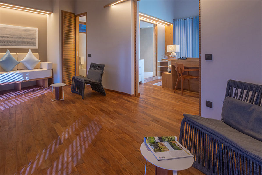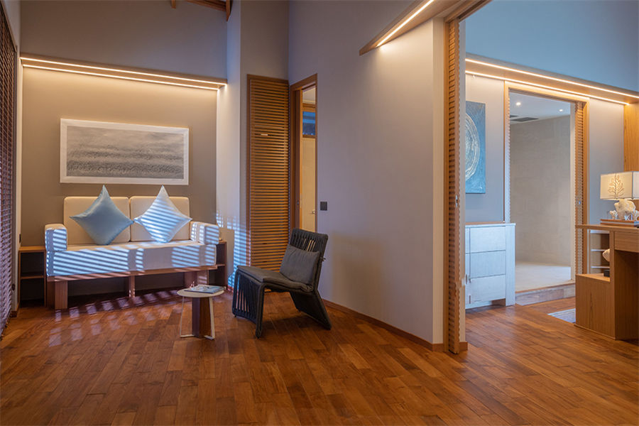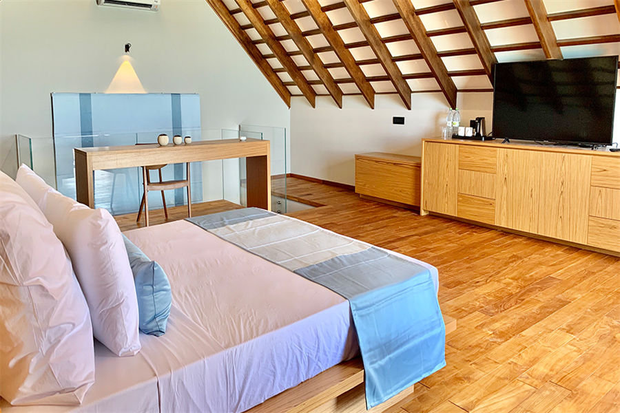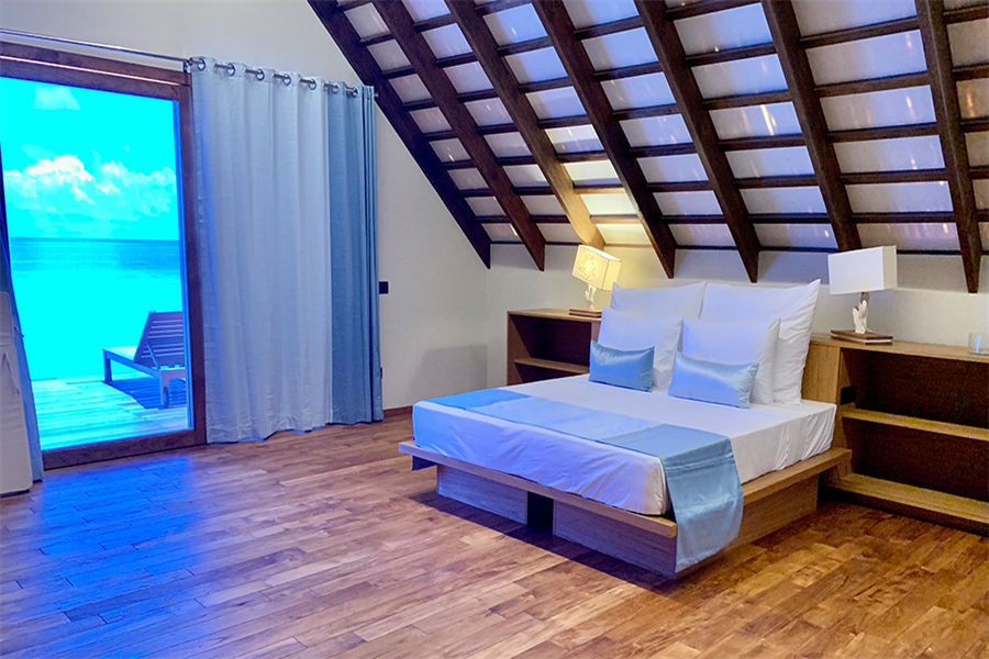 房型介绍:水上小屋的面积100㎡,最多可以入住4成人和1位儿童。您可以直接下海浮潜,在印度洋里找寻鱼群的身影,让自己沉溺在美妙的海洋世界里,累了就上岛休息,这正是薇莉富士岛的魅力!