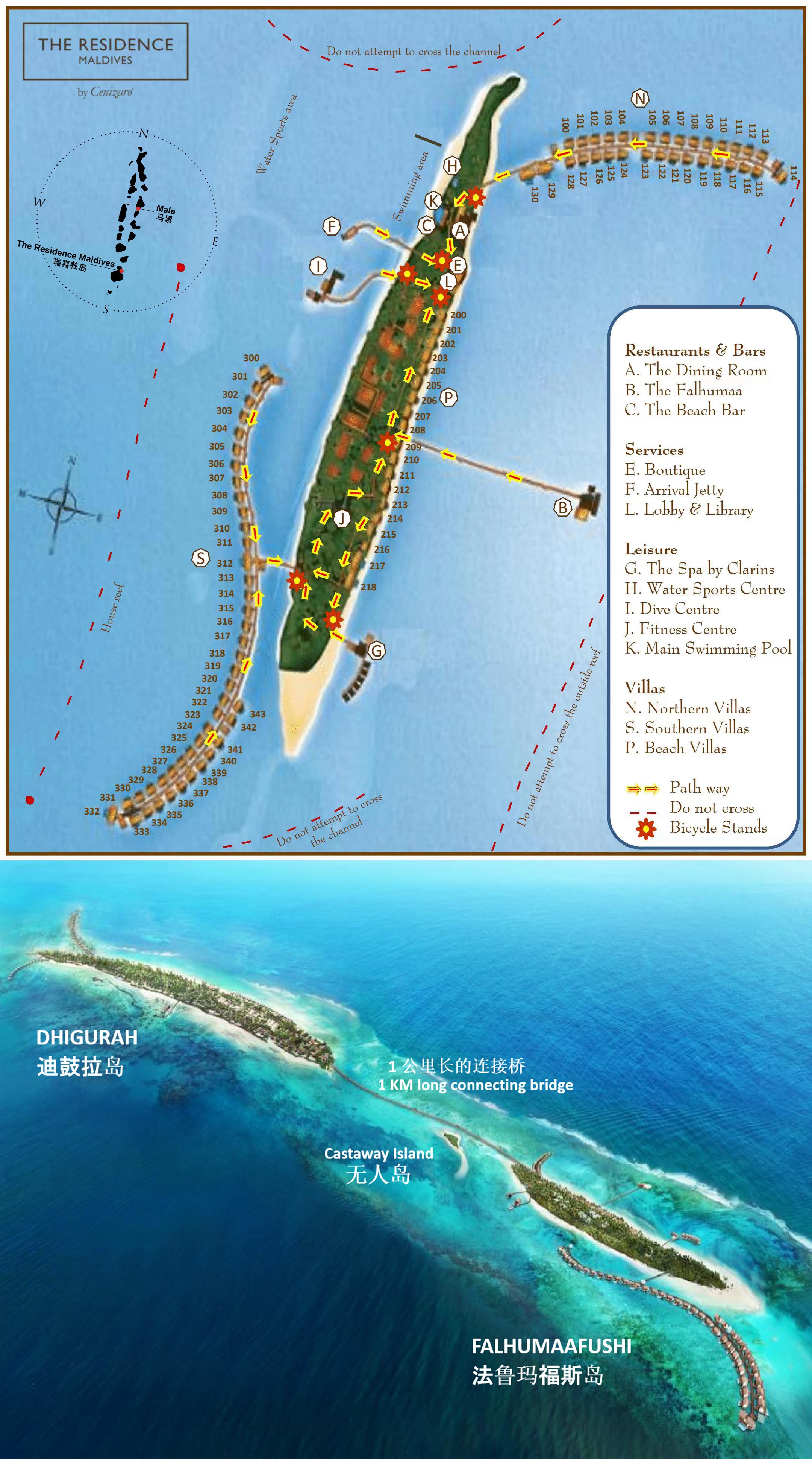 马尔代夫瑞喜敦The Residence Maldives Falhumaafushi,距离马累较远,,2012年开业的六星岛屿,,2019年重新装修,国人较少,相对安静。而且,瑞喜敦岛是马尔代夫首个娇韵诗水疗中心,岛上无论私密性,房间布局和位置水屋都比沙屋要好一些。瑞喜敦岛位于马尔代夫马累国际机场南面242公里,从马累国际机场乘搭国内航班50分钟前往 Kaadedhdhoo 机场,然后转搭快艇5分钟到瑞喜敦岛。也可选择从马累国际机场乘搭水上飞机,90分钟内直达瑞喜敦岛。瑞喜敦岛设计风格保持了马尔代夫传统的建筑特征。古朴的茅草盖屋顶、富有当地特色的手工艺品以及结合了独特优雅设计和The Residence品牌现代美感的墙面艺术,提供私人管家贴心服务。在岛上,最方便的交通工具就是单车,所以建议进岛的第一天就在接待处预定,另一种交通工具就是小电瓶车(Buggy Car),免费的,按照预定的先后顺序接送,所以平均等待时间较长,不方便。岛上有中文服务,工作人员很热情,和你打招呼,对你微笑。岛上有三个地方提供免费WIFI,分别是图书馆(大堂二楼)、Beach bar 和住的的房间。所以有手机控的人不用愁了,你可以随时上网分享你的旅行。 和姐妹岛瑞喜敦D岛通过栈桥相连,完美构成双岛游。并且正在筹划新建水屋海上滑梯。