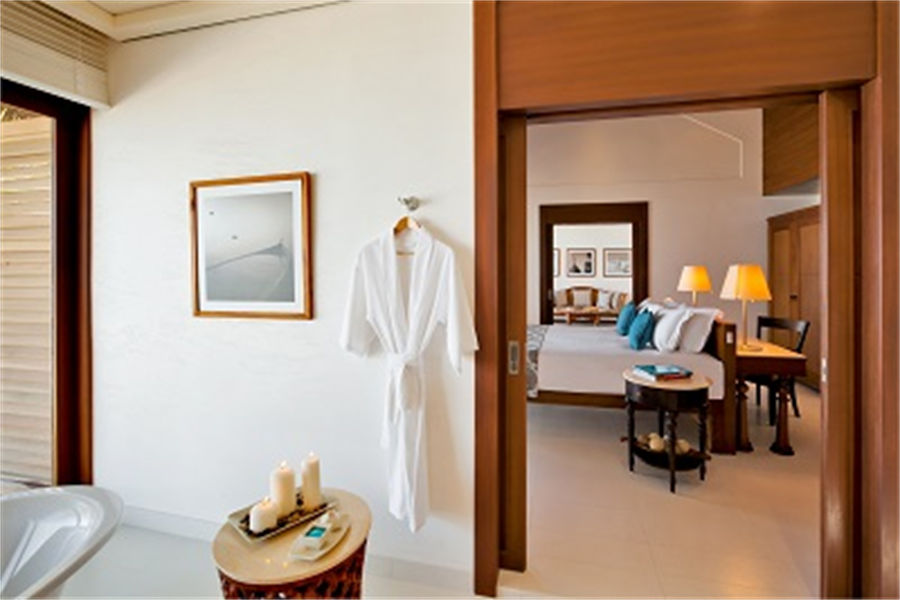 房型介绍:全岛4栋的双卧水上泳池别墅面积为282㎡,标配42.5㎡的超大私人泳池。别墅面朝大海,室内装饰优雅舒适,跨出几步就能欣赏闻名遐迩的美丽海景。携全家外出旅游的理想天堂。另外有一间卧房配有双床。