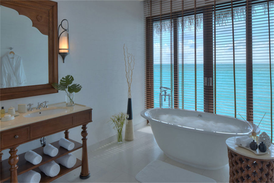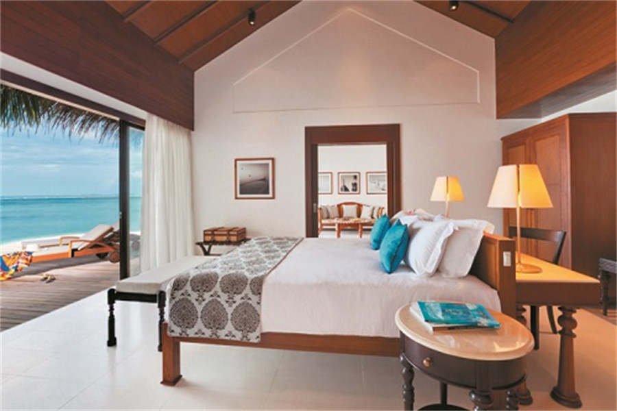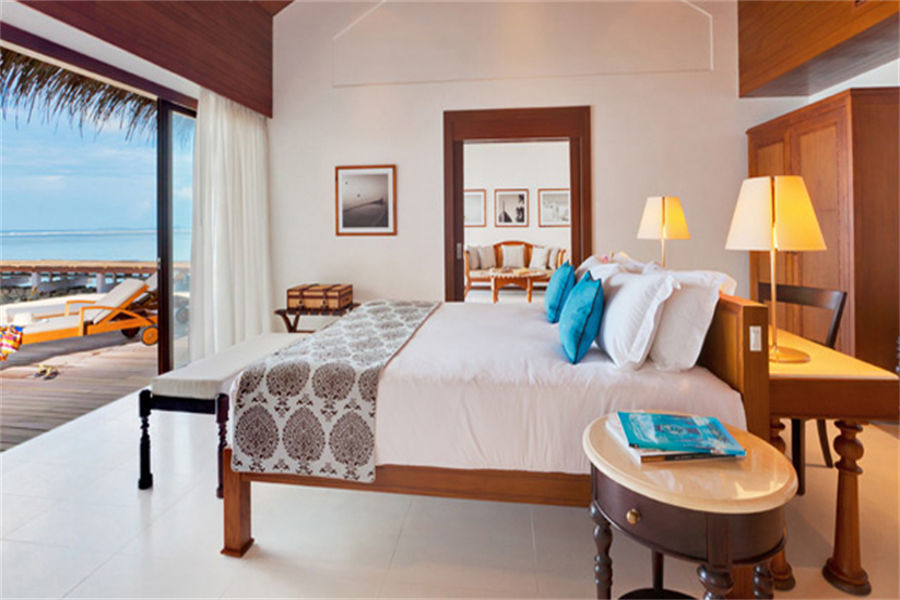 房型介绍:全岛39栋的水上别墅面积为137㎡,每栋别墅均设有宽敞的客厅,客厅可以通向私人露台,在这里您可以沉醉在马尔代夫的阳光中,愉悦于您眼前真实可见的大型水族馆。