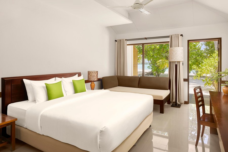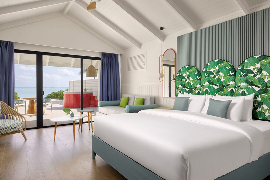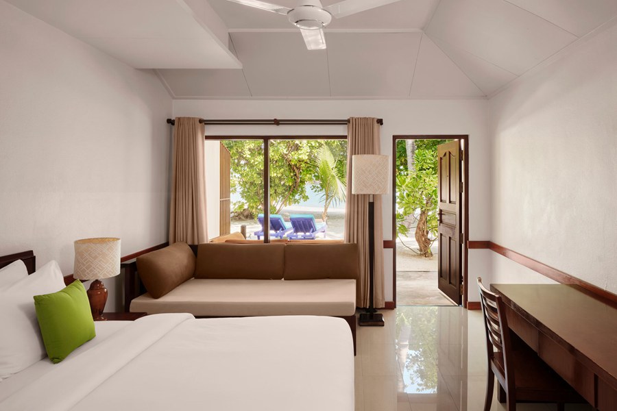 房型介绍:每间海滩别墅均配有私人阳台、现代化的设施和优雅的设计特色,配备了您在马尔代夫度过难忘假期所需的一切。