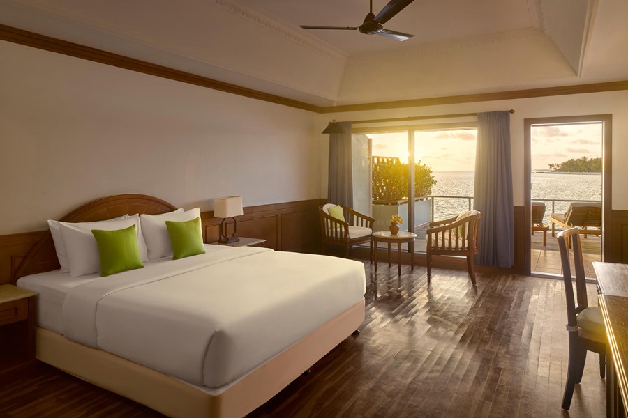 房型介绍:我们的一卧室日落海滩别墅地理位置优越,可欣赏大海全景。柔软的白色沙滩和碧绿的海水距离酒店仅数米之遥,每栋别墅的私人阳台都是观看神奇的马尔代夫日落变成繁星点点的夜空的完美场所。