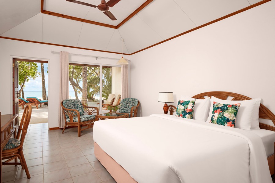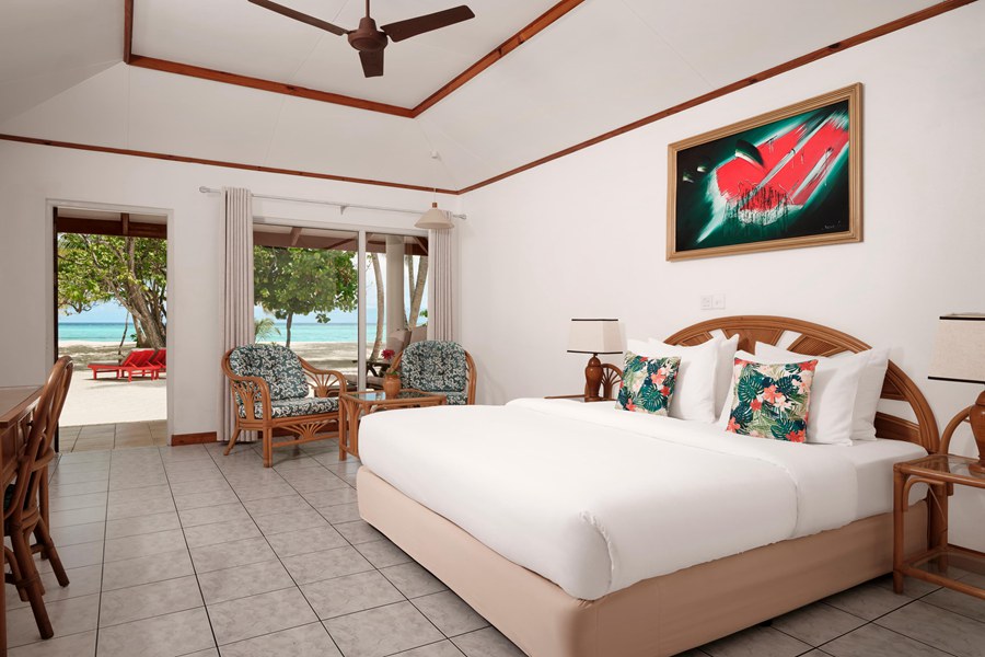 房型介绍:我们的两卧室家庭海滩别墅坐落在珍珠白色的沙滩海岸线上的椰子树丛中。私人露台距离碧绿的泻湖仅几步之遥,而 Villa Park 充满活力的酒吧、餐厅和潜水中心均近在咫尺。