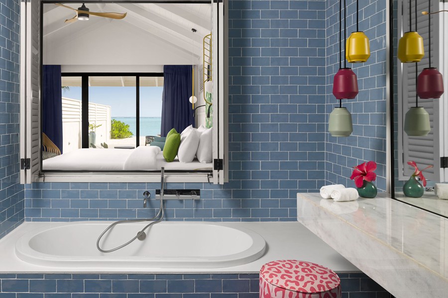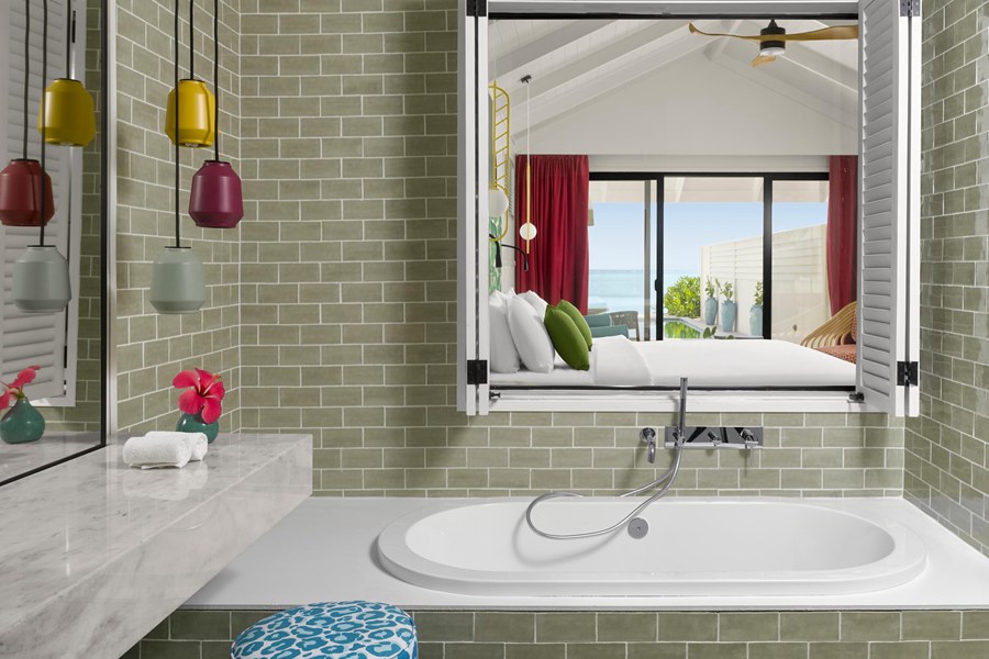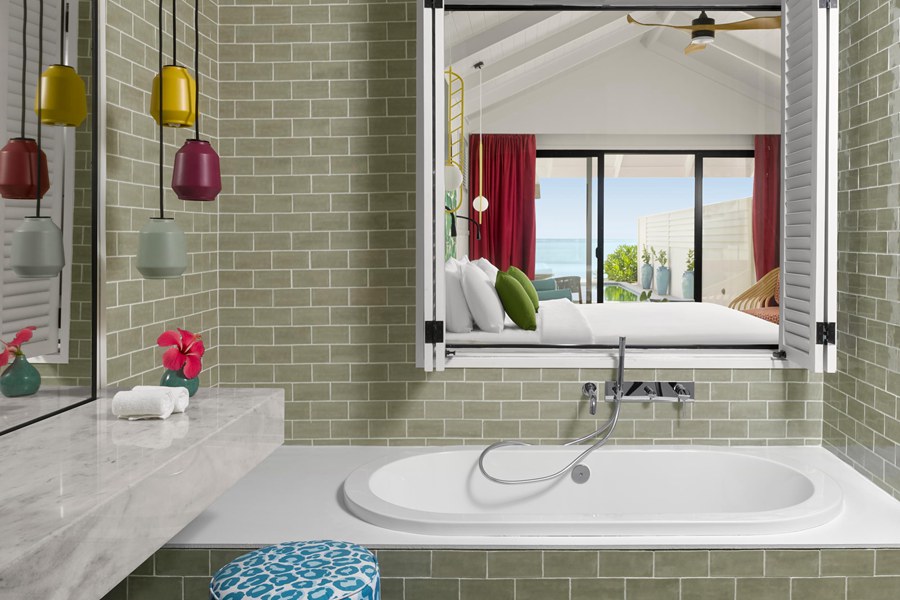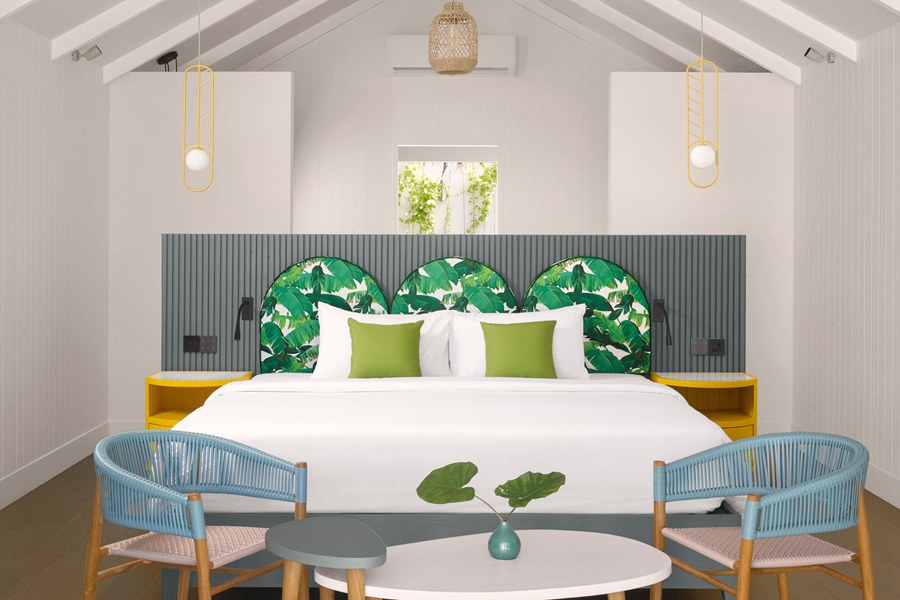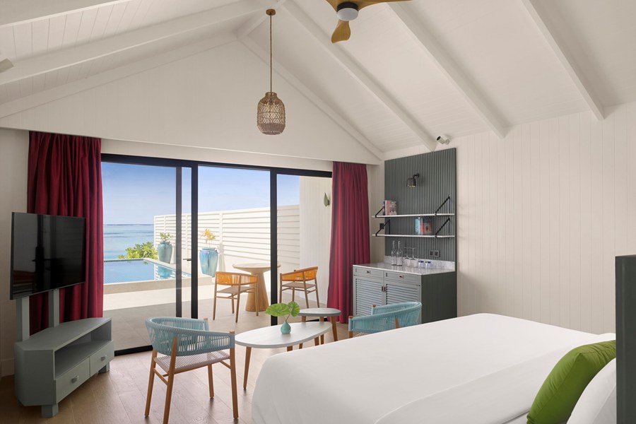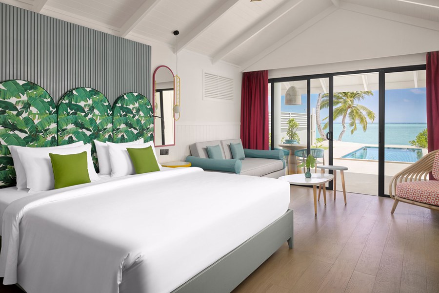房型介绍:这些时尚宽敞的海景泻湖海滩别墅坐落在岛上茂密的植被之间,通向泻湖,提供绝对的隐私,充满活力的内饰与热带环境完美融合。