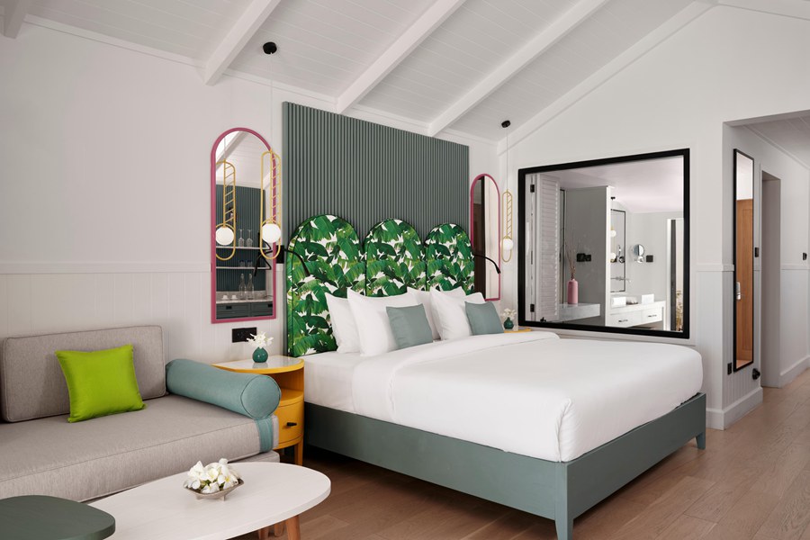 房型介绍:我们的一卧室豪华海滩泳池别墅位于岛上的自然丛林附近。每间客房均拥有明亮通风的内饰、露天淋浴、波光粼粼的游泳池和漩涡浴缸。此外,每间客房均可直接通往朝南的海滩和远处碧绿的海水。