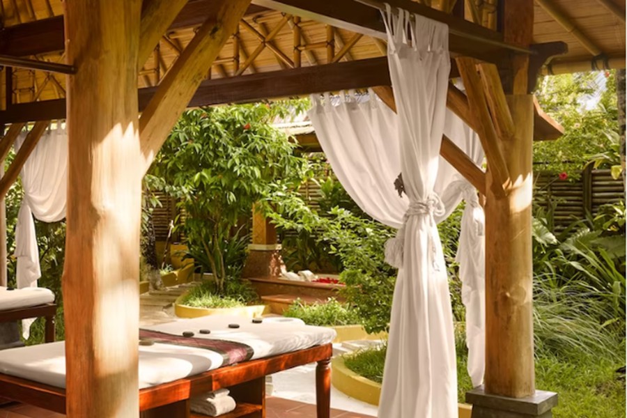 活动介绍:9:00 – 20:00 阿拉姆肌肤护理院由维拉连锁饭店直接经营。是一家马尔代夫人经营的肌肤护理公司,可以提供马尔代夫传统的推油按摩,海沙进行的按摩等,非常具有马尔代夫特色。17间开放式的护理室位于茂密的绿色树林中,给人的感觉非常的舒服。让我们消除层层紧张,带您进入内心平静的崇高世界。我们僻静的 Araamu 水疗中心是您个人健康之旅的终极绿洲。
