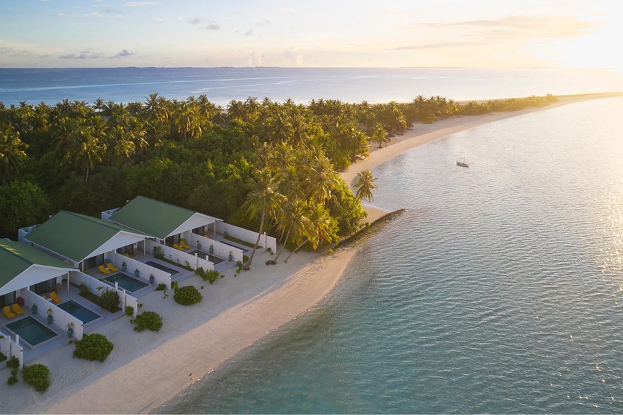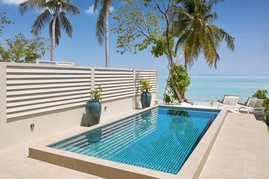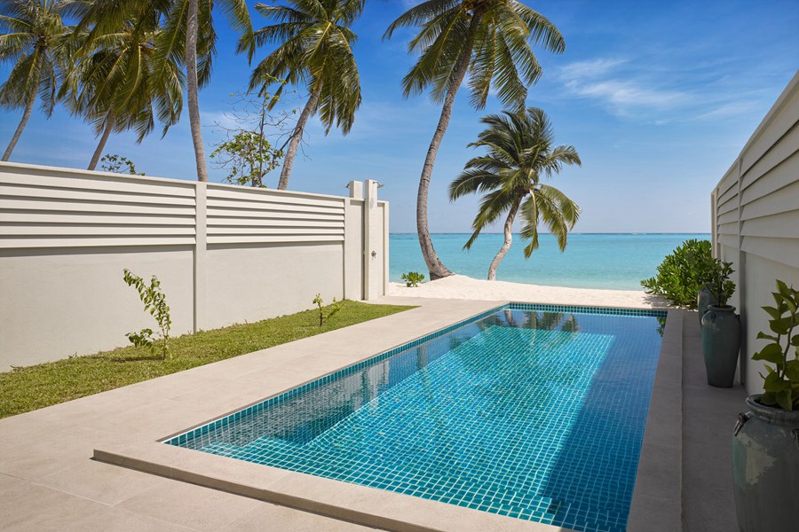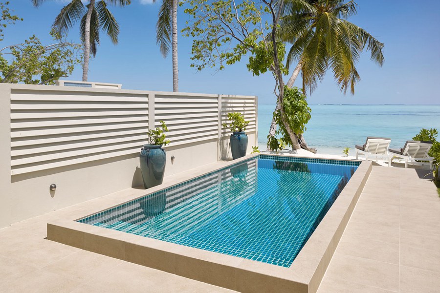 房型介绍:每栋宽敞的别墅均通向私人阳台、游泳池、露天淋浴和日光浴平台,体现了豪华的室内外生活。现代海滨别墅的感觉与纯正的马尔代夫魅力完美融合。在热带岛屿微风的清凉下,在私人泳池中放松身心,或者探索家门口的原始白色海滩和碧绿海水。一起度假的家人或朋友可以选择预订两栋相邻的连通别墅。