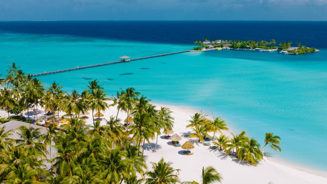 ①太阳岛是马代最大的岛屿之一,拥有超大拖尾。