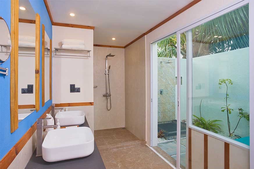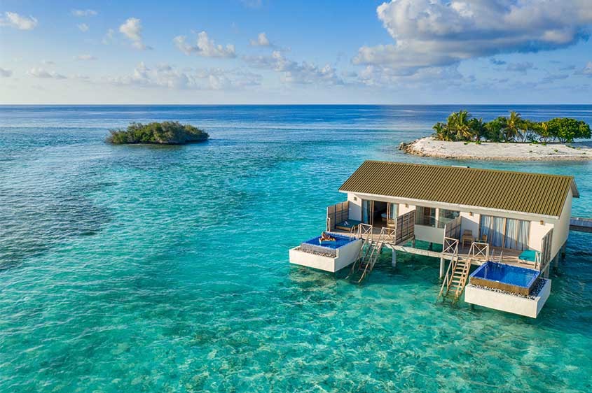 房型介绍:房间面积为65㎡,从别墅能够看到印度洋壮丽的日出,别墅的室外淋浴间被热带植物包围,可以从别墅直接到达私人海滩,还能在绿松石泻湖中泡一泡,与心爱的人吹着海风,享受着日落。