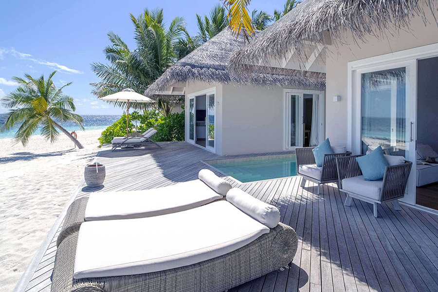 房型介绍:私人泳池,宽敞且井井有条的内部空间,可直接通往白色沙滩,让您沉浸在印度洋清澈的海水中,拥有无与伦比的私密性。