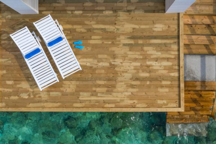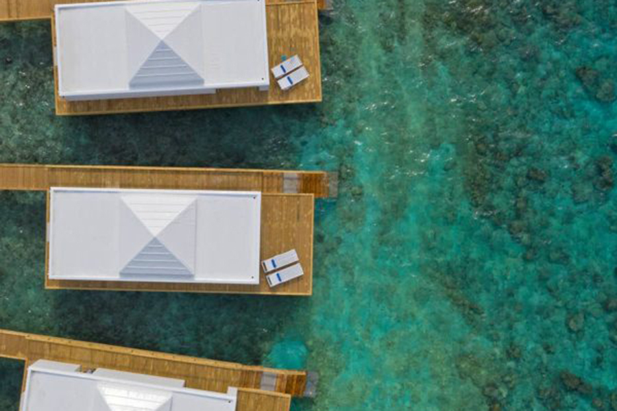 房型介绍:水上简易别墅建在泻湖上方的高跷上,在两个独立的码头上设有私人露台。客房配有空调、手工制作的木质镶木地板门、雅致的家具,包括定制家具、特大号床和沙发床。浴室配有双盥洗盆和宽敞的步入式淋浴间。