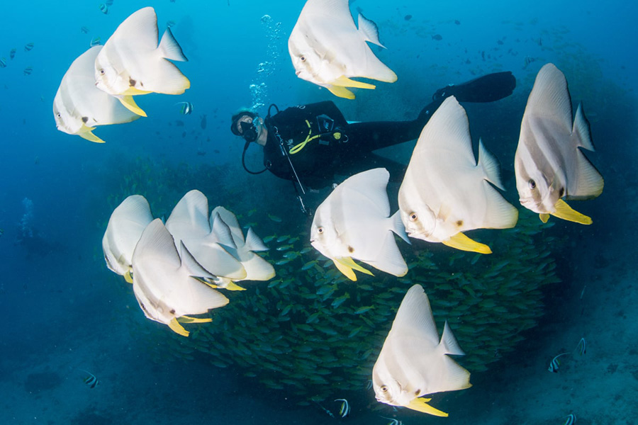 活动介绍:潜水中心的合格教练随时为您服务,帮助您充分享受海底世界的美景。教练将陪同您乘船游览珊瑚礁。潜水中心根据SSI、CMAS和PADI指南开设从开放水域到专业水域的课程。该中心提供高氧潜水和水下滑板车。马尔代夫最好的潜水点,包括Fishhead、Mayaa Tila、Maaga Tila和Manta Point,都可以在岛屿附近找到。