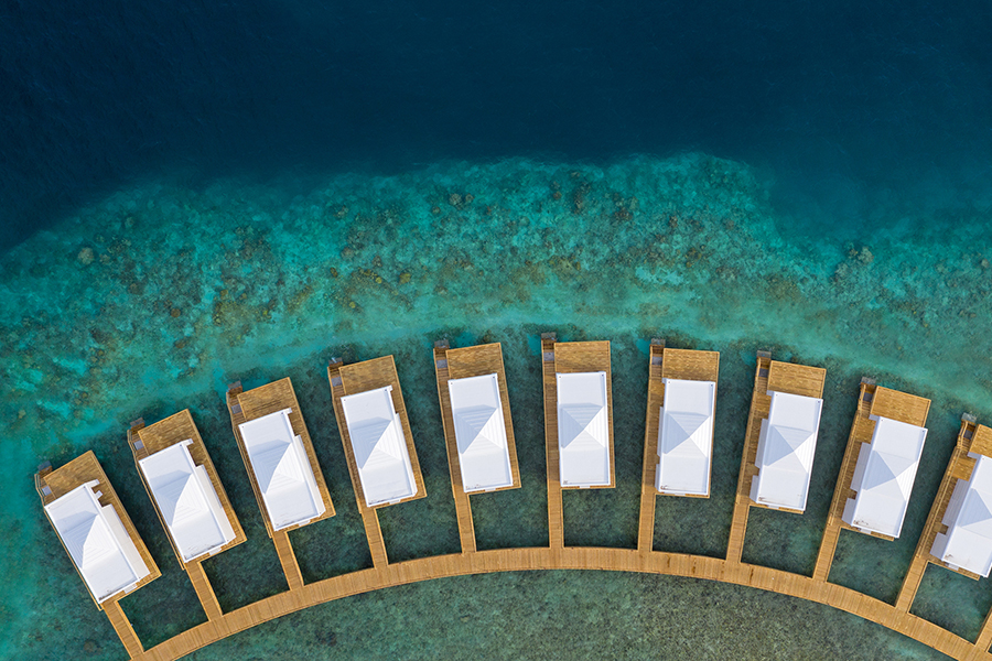 房型介绍:海滩简易别墅面朝泻湖的原始浅水区,设有可直接通往海滩的私人甲板阳台。客房配有定制设计的家具、独立空调、吊扇以及带双盥洗盆和露天淋浴的浴室。
