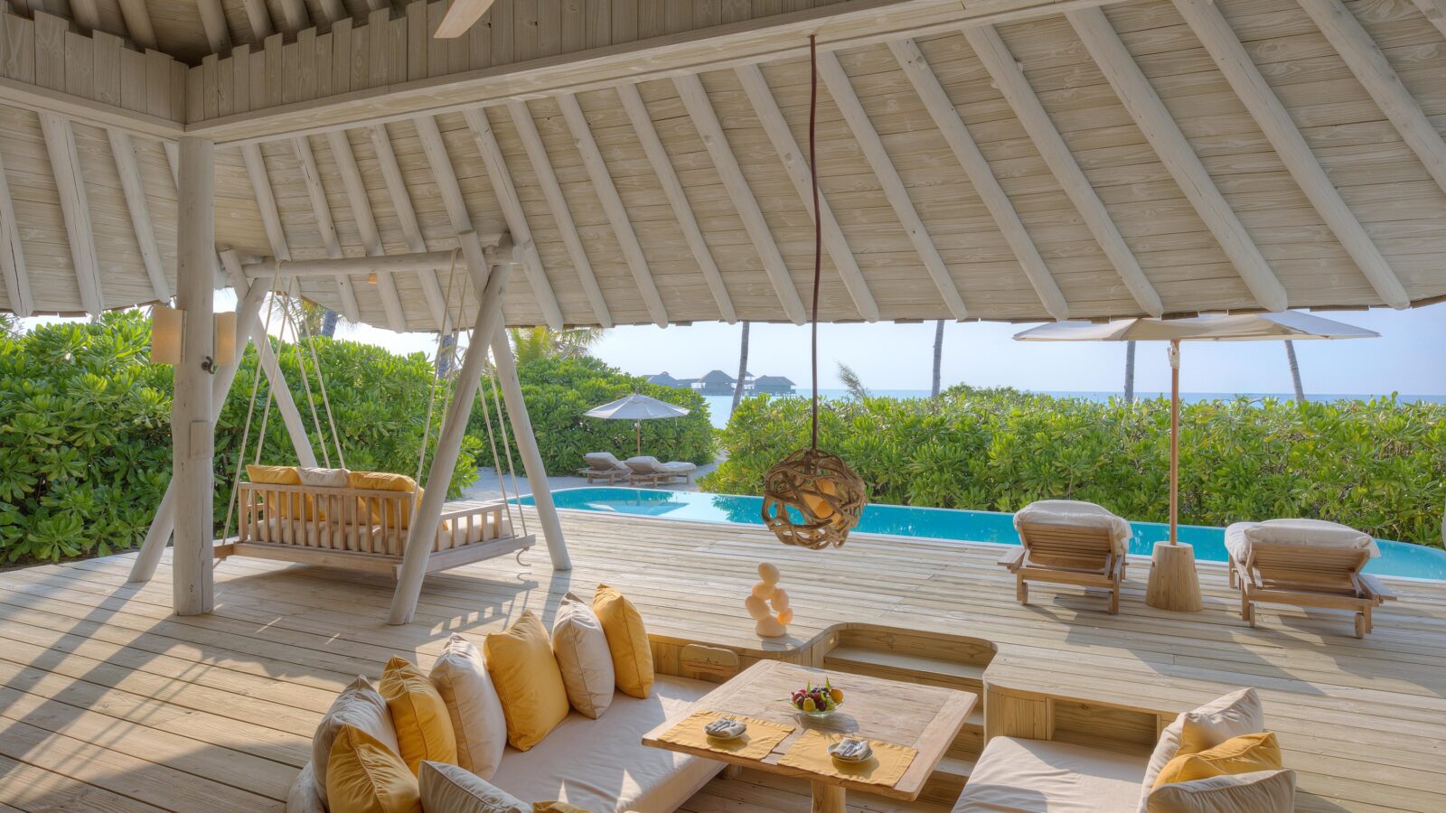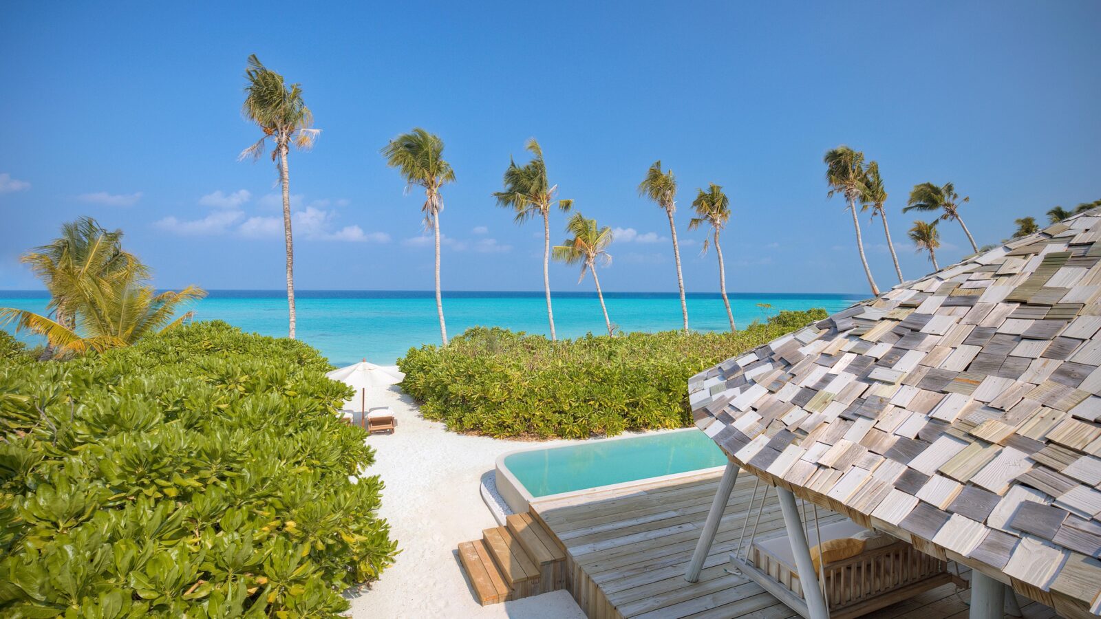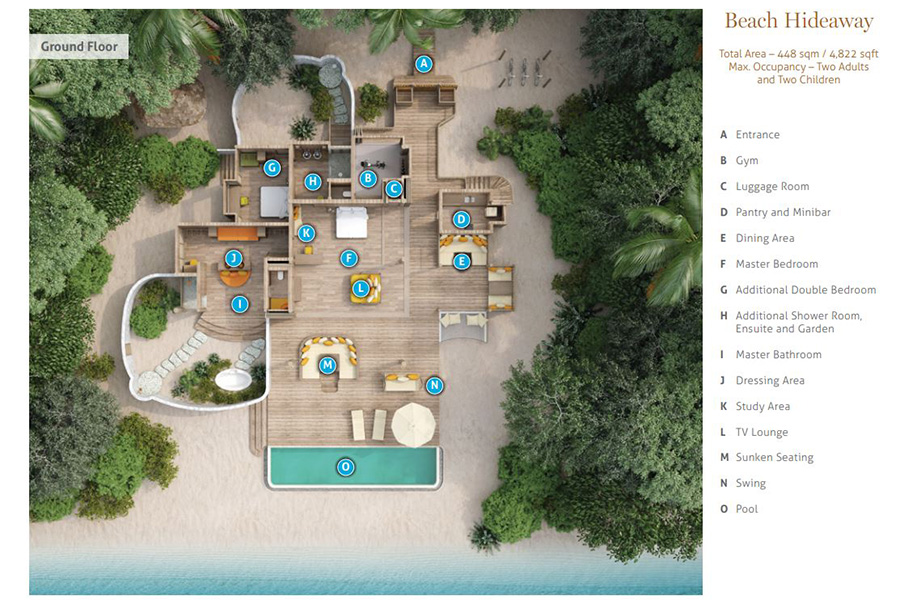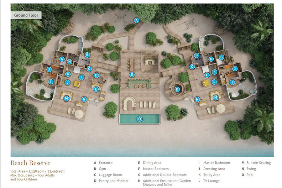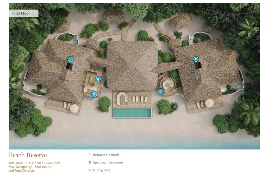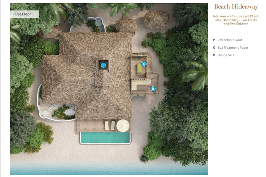 房型介绍:私人海滩世外桃源酒店分布在两层楼,距离泻湖波光粼粼的海水仅几步之遥。主卧室设有可伸缩的观星屋顶和带下沉式浴缸、封闭式卫生间、室内和室外淋浴以及专用更衣区的宽敞户外浴室。设备齐全的健身房和带套间淋浴间和卫生间的相邻儿童房也位于别墅的后面。在室外,木制露台环绕着私人淡水游泳池、下沉式用餐区和秋千沙发床,在马尔代夫无尽的蓝天下提供充足的放松空间。一楼还设有带大沙发床的开放式客厅、学习区、带迷你吧的储藏室和户外用餐区。同时,一楼设有水疗室和带沙发床的户外用餐凉亭。