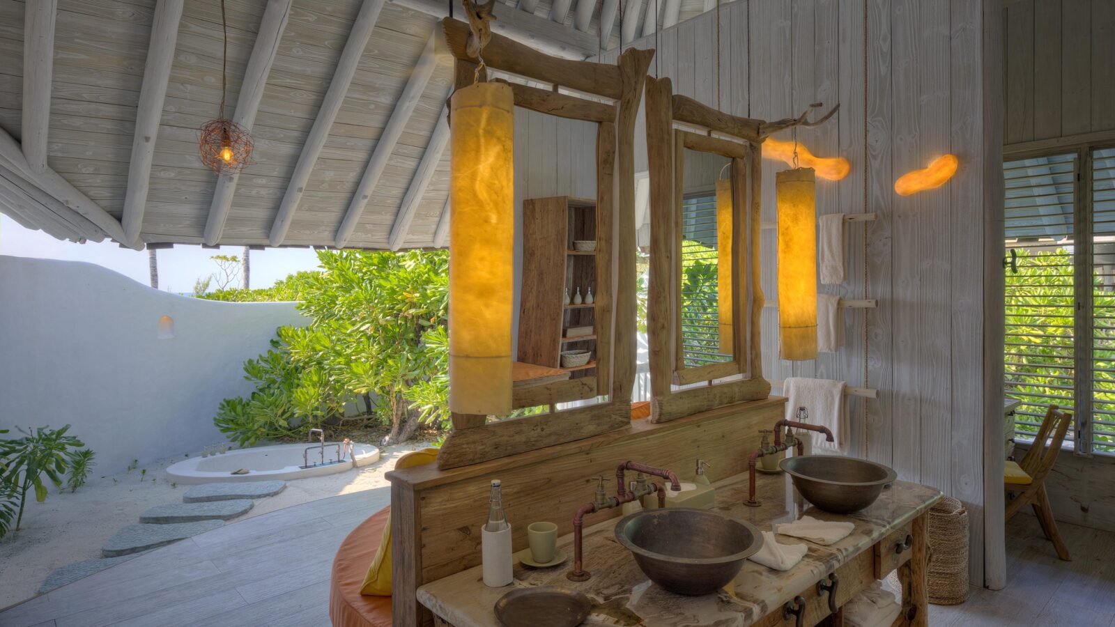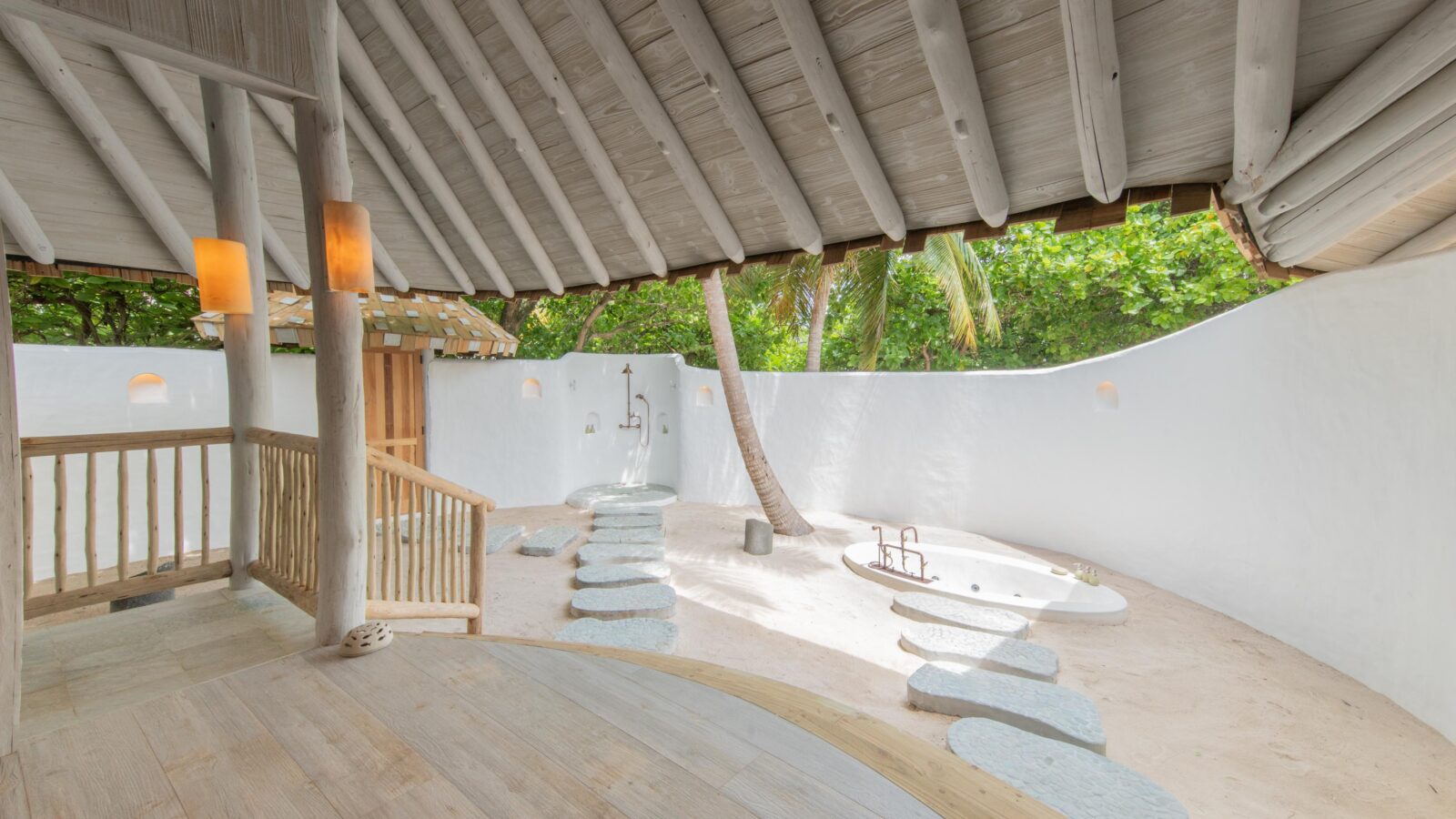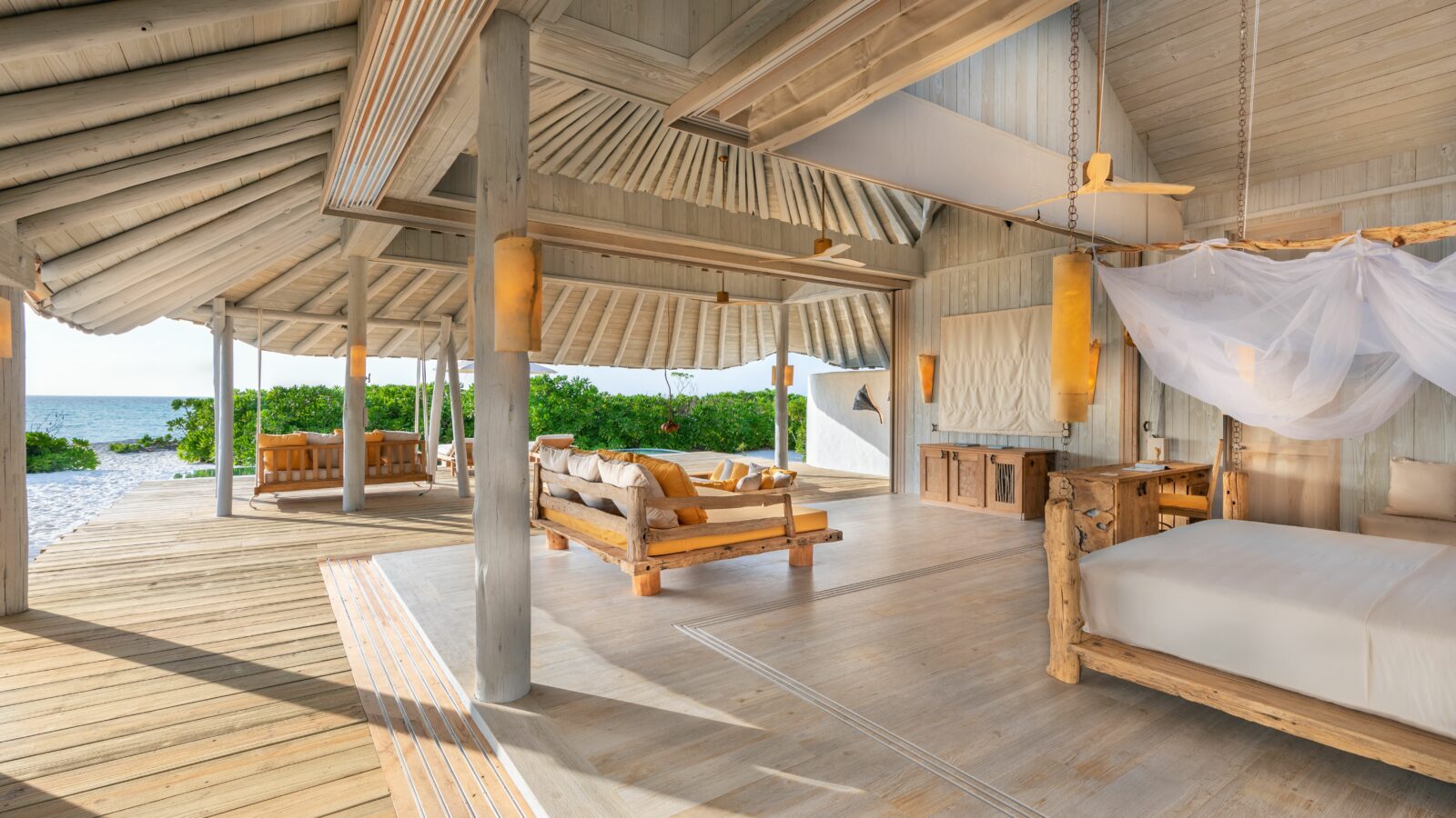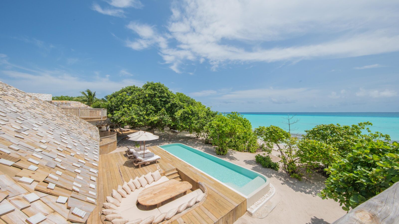 房型介绍:私人海滩世外桃源酒店分布在两层楼,距离泻湖波光粼粼的海水仅几步之遥。主卧室设有可伸缩的观星屋顶和带下沉式浴缸、封闭式卫生间、室内和室外淋浴以及专用更衣区的宽敞户外浴室。设备齐全的健身房和带套间淋浴间和卫生间的相邻儿童房也位于别墅的后面。在室外,木制露台环绕着私人淡水游泳池、下沉式用餐区和秋千沙发床,在马尔代夫无尽的蓝天下提供充足的放松空间。一楼还设有带大沙发床的开放式客厅、学习区、带迷你吧的储藏室和户外用餐区。同时,一楼设有水疗室和带沙发床的户外用餐凉亭。