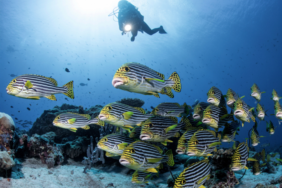 ②位于顶级浮潜的哈达鲁环礁,酒店拥有专业的潜水中心
