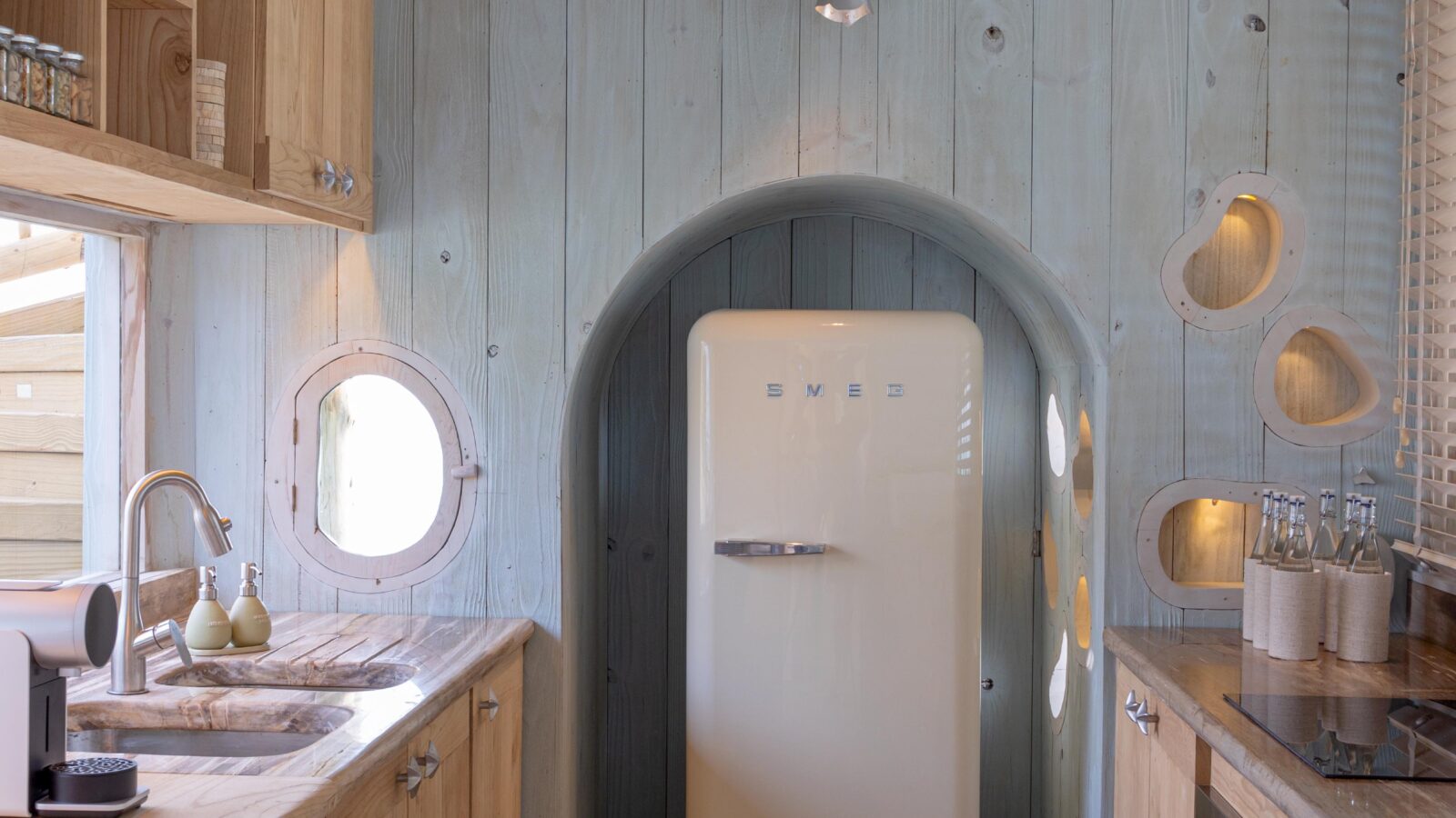 房型介绍:在别墅可伸缩屋顶的舒适主卧室观看星空,或在舒适的特大床上欣赏各种海洋生物。别墅后部还设有带连接淋浴间和卫生间的相邻儿童房。此外,还有一个学习区、设备齐全的健身房、茶水间和迷你吧、带封闭式卫生间的浴室、更衣室、淋浴间和下沉式浴缸,可通往泻湖的私人通道,以及带下沉式座椅的宽敞用餐区。楼上是水疗室、带沙发床的用餐凉亭和弧形滑水道,可带您前往下方碧绿的海水。