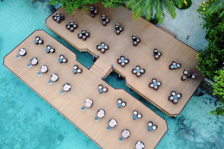 酒吧介绍:蓝色泻湖酒吧位于水上别墅中,可欣赏到蔚蓝的大海和天空的美景,提供新鲜制作的小吃,如汉堡、比萨饼和沙拉,午餐种类丰富,口味丰富,另一个王牌是全包式嗨 - 茶自助餐在冲浪咖啡厅的中心供应。晚餐还提供烛光晚餐、令人垂涎的牛排和每日捕获的海鲜。在宽敞的日光浴平台上享用您最喜爱的饮品,与来自印度洋的凉爽微风混合在一起。在这里用餐将永远是一次难忘的经历。