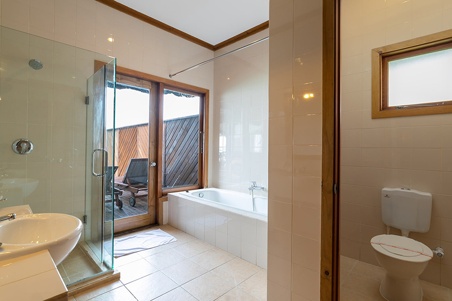 房型介绍:无论您身在何处,景色都令人叹为观止。这些别墅有一个 带家具的露台俯瞰大海,可直接通往泻湖 台阶的楼梯。沉入现代边缘的深浴缸中。日光浴平台为每位客人提供 他们自己的放松空间;卧室通向一个甲板,可欣赏到舒缓的景色 泻湖。
