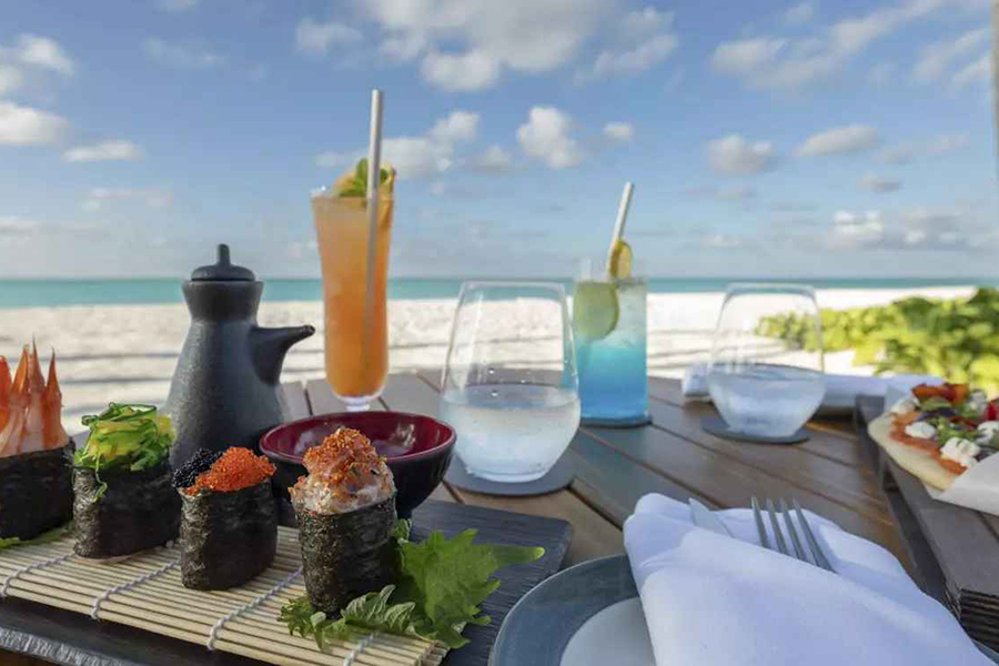 岛屿的餐饮配置还算不错,拥有3间餐厅、1间小吃店和3间酒吧,丰富的餐食选择,正宗的美食体验,也有水疗中心来治愈运动劳累后的疲惫。