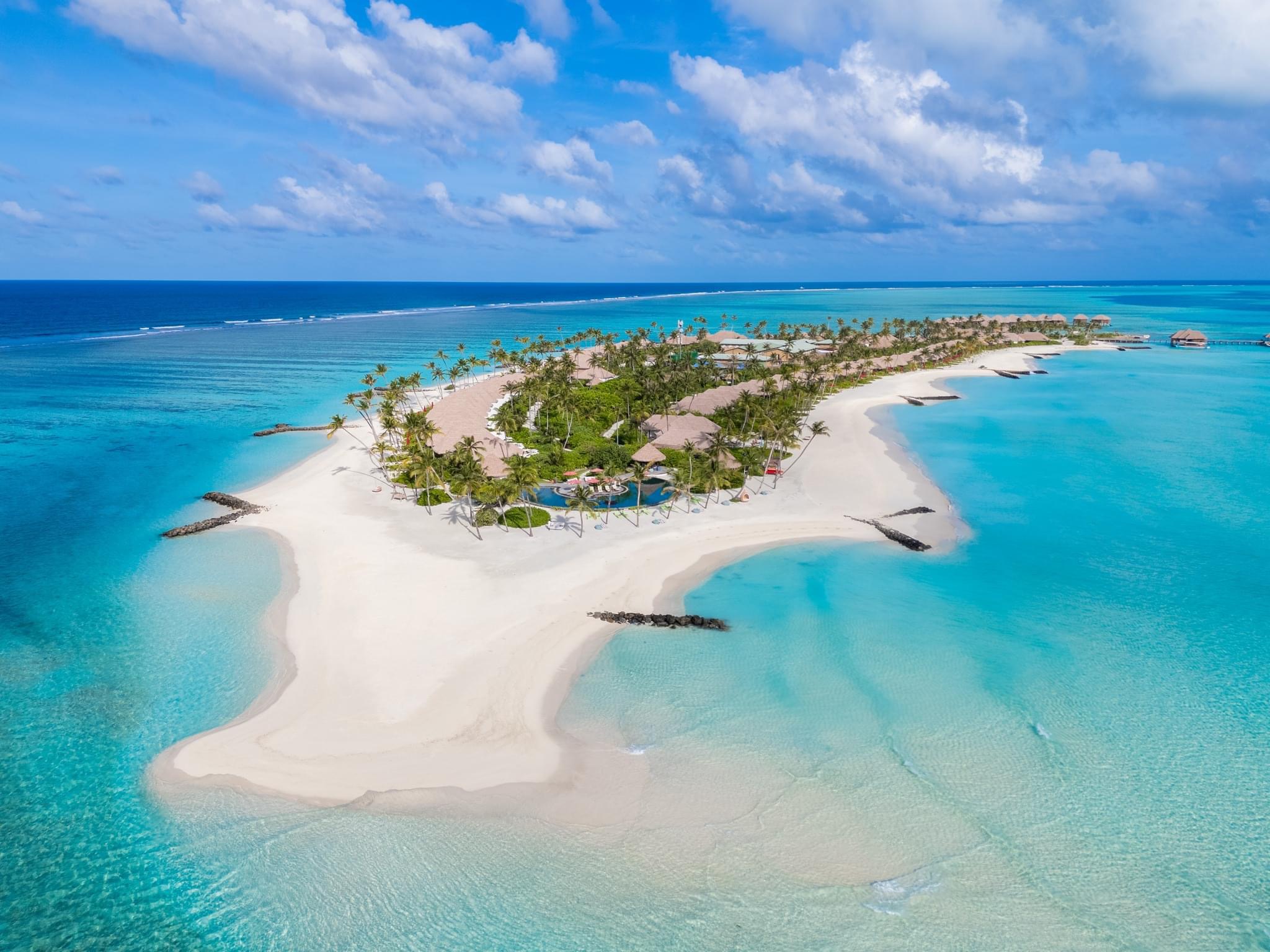 岛屿拥有近100栋别墅,其中63间海滩别墅、30间水上别墅和7间带泳池的海滩套房,丰富的设施和超高的隐秘性,可谓是蜜月游的最佳选择。