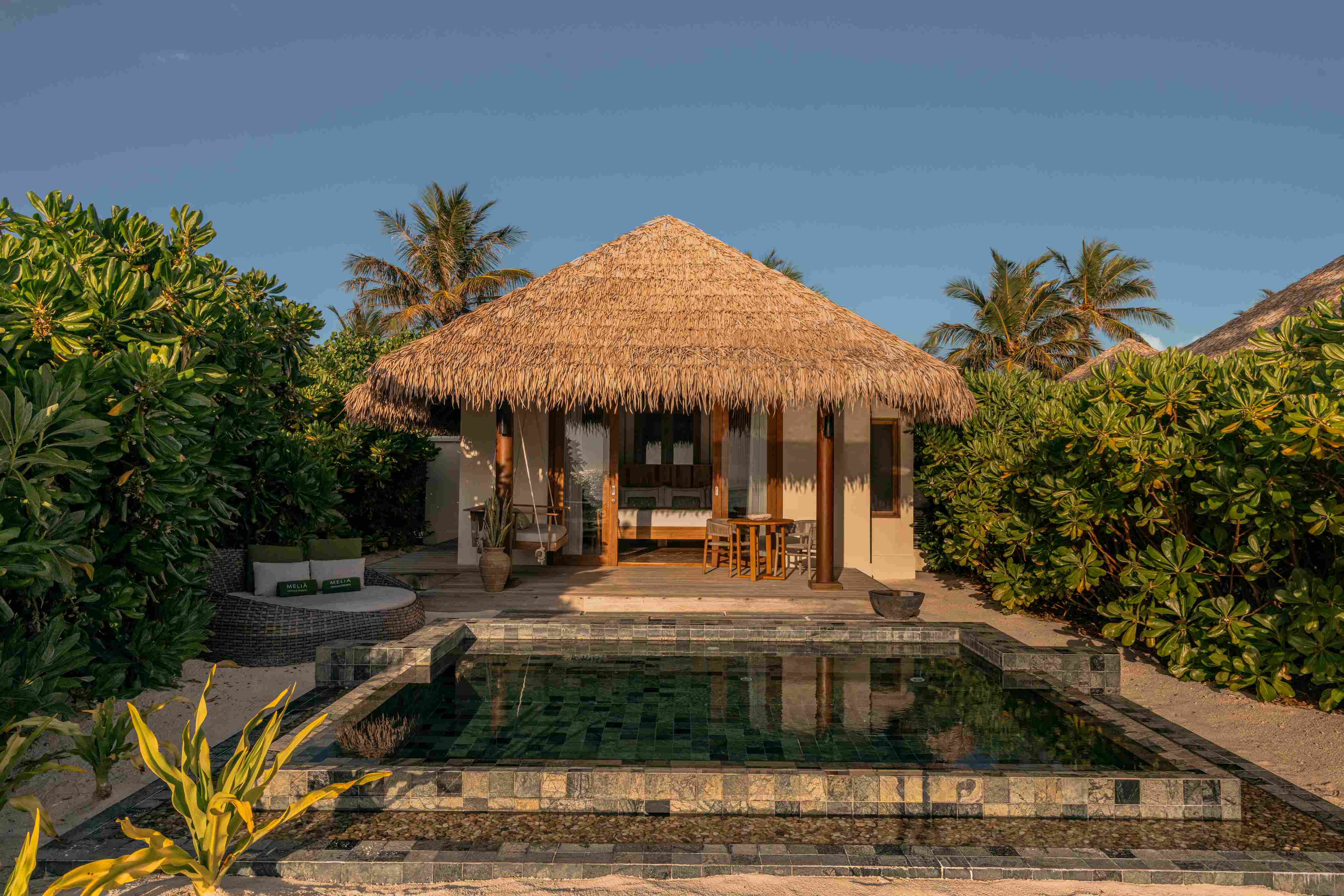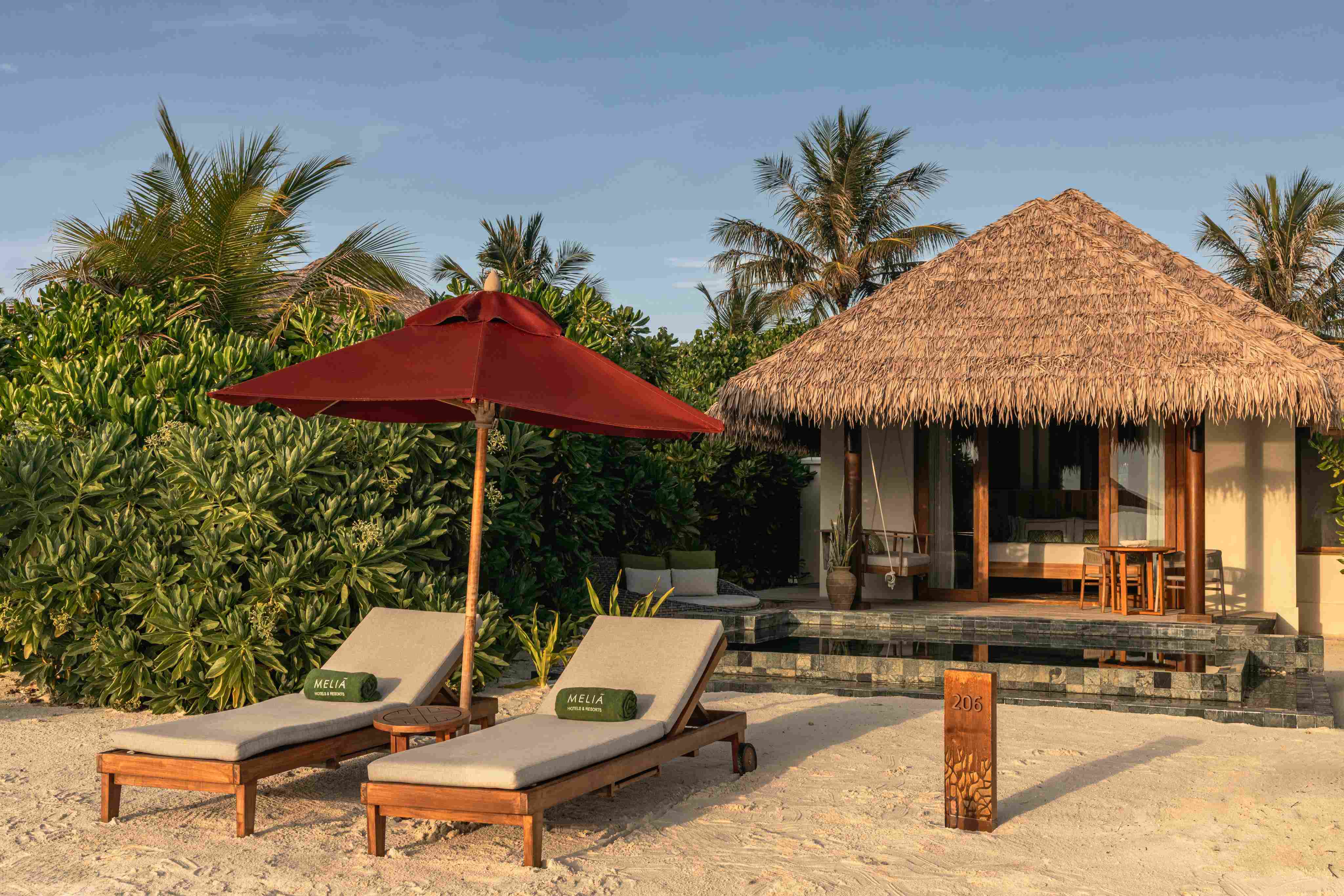 房型介绍:宽敞的日落套房别墅总面积为 114 平方米,在设计时充分考虑了放松和舒适,设有游泳池和室外浴室、外部和内部淋浴间和浴缸。在这个马尔代夫的度假胜地中寻找宁静,天然木质室内将你与岛屿连接起来,开放式浴室配有浴缸、室内外淋浴和茂密植被,增强了逃离现实的感觉。宽敞的露台配备了日光躺椅、私人泳池和直接通往海滩的露台,通过细致的细节和宽敞的空间提升了这座别墅的空间,满足寻求舒适与隐私的追求。