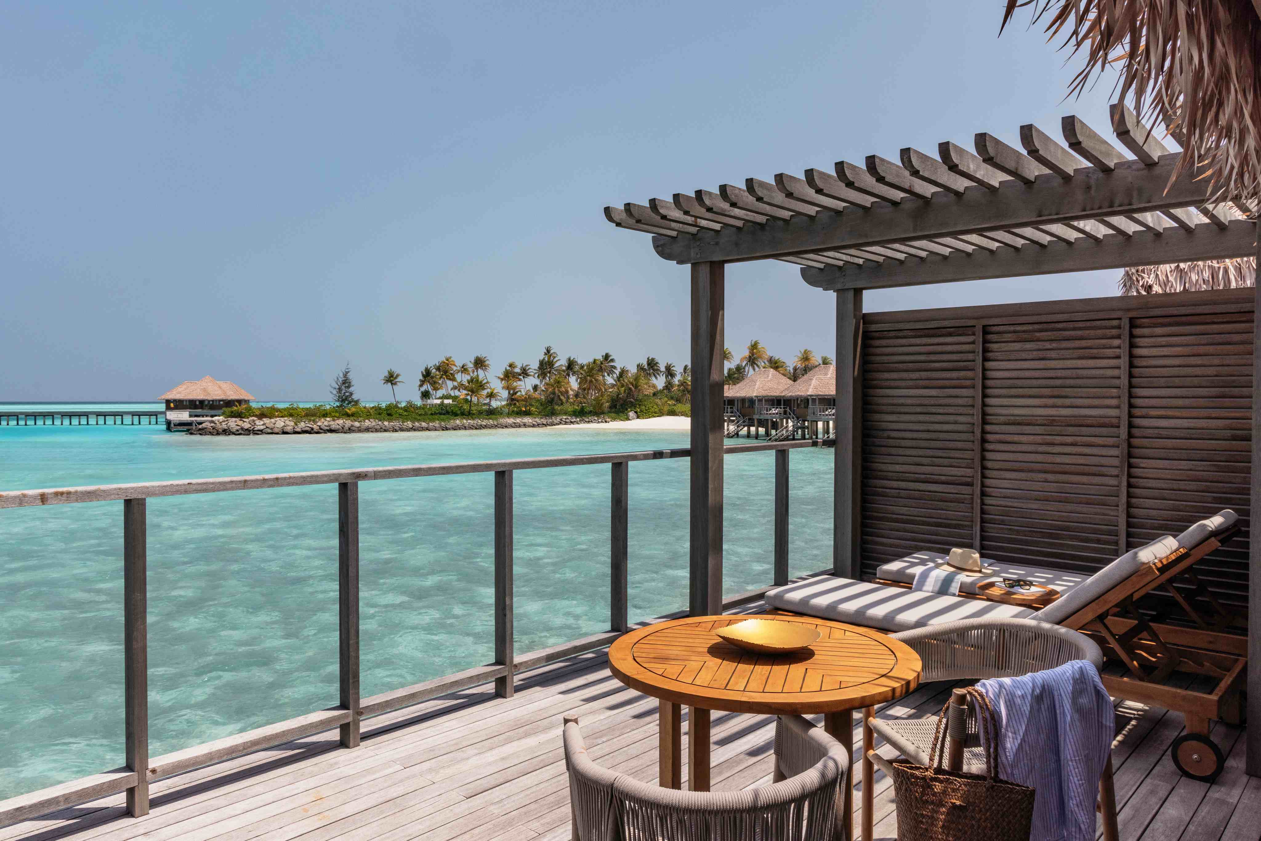 房型介绍:这些别墅建在水面上,让您可以在舒适的露台上放松身心,欣赏壮观的马尔代夫日落。客房面积为85平方米,设有日光浴平台,包括带户外家具和日光躺椅的露台,可直接通往大海。别墅配备了您享受世界上最好的度假体验之一所需的所有设施。您可以直接从台阶上探索马尔代夫的海洋生物,无需离开别墅即可沉浸在这种迷人的体验中。