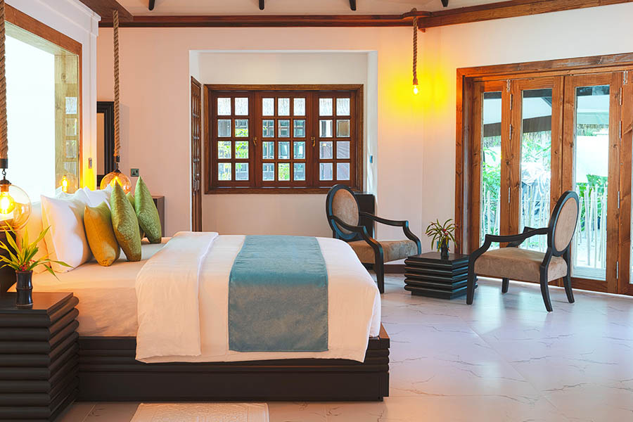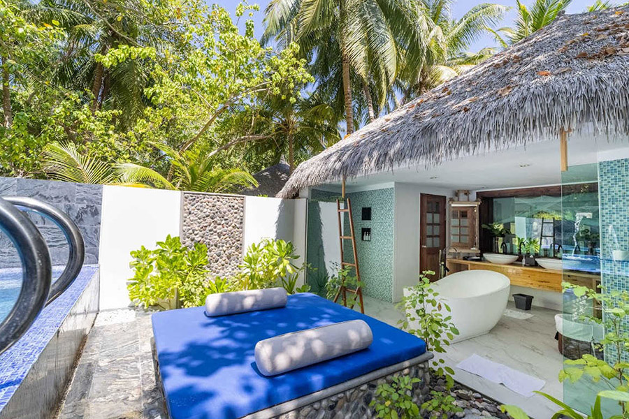房型介绍:Kihaa酒店的花园别墅设有一间带舒适特大号床和沙发床的大卧室、一个宽敞的衣柜以及一间带浴缸和花洒淋浴的浴室。这些别墅位于岛屿内部,非常适合想要享受热带风情的客人。私人泳池外环绕着硬木甲板区,是户外休闲时光的理想场所,周围郁郁葱葱的植被提供了最大的隐私。花园别墅距离基哈(Kihaa)迷人的白色沙滩和印度洋仅有几步之遥。