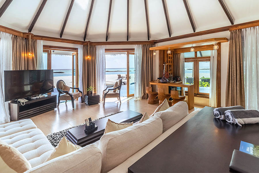 房型介绍:海滩套房拥有 150 平方米的豪华空间,非常适合寻求安静海滩度假胜地和额外空间的客人。这些客房拥有自己的私人无边泳池和带顶棚的户外起居空间,非常适合那些想要逃离正午阳光的人。宽敞的卧室内配有一张特大号床和一间独立浴室,提供充足的起居空间。酒店位于海滨,可直接通往环绕Kihaa的原始海滩的白色沙滩,距离印度洋碧绿的海水仅几步之遥。