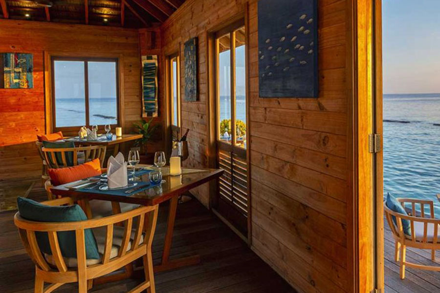 餐厅介绍:在泻湖上的高跷上休息,食客可以享受令人难以置信的菜肴,周围环绕着马尔代夫令人难以置信的美景。
